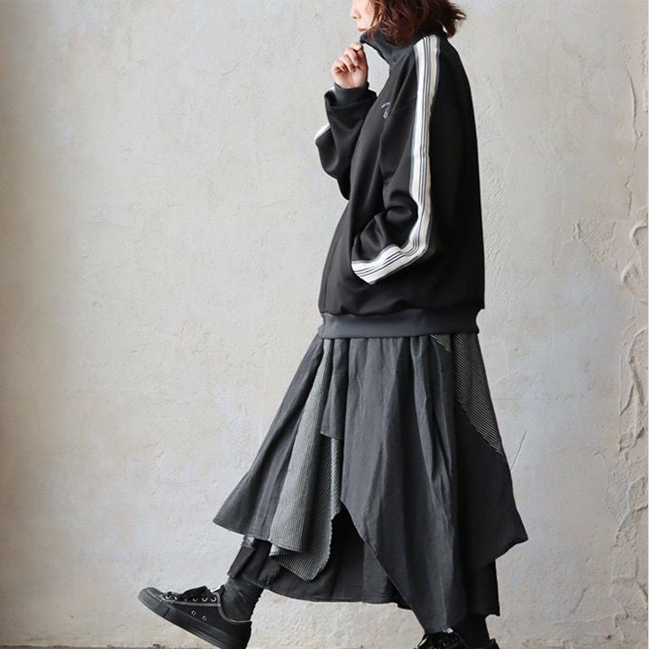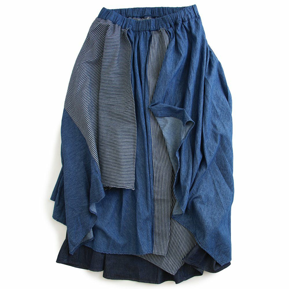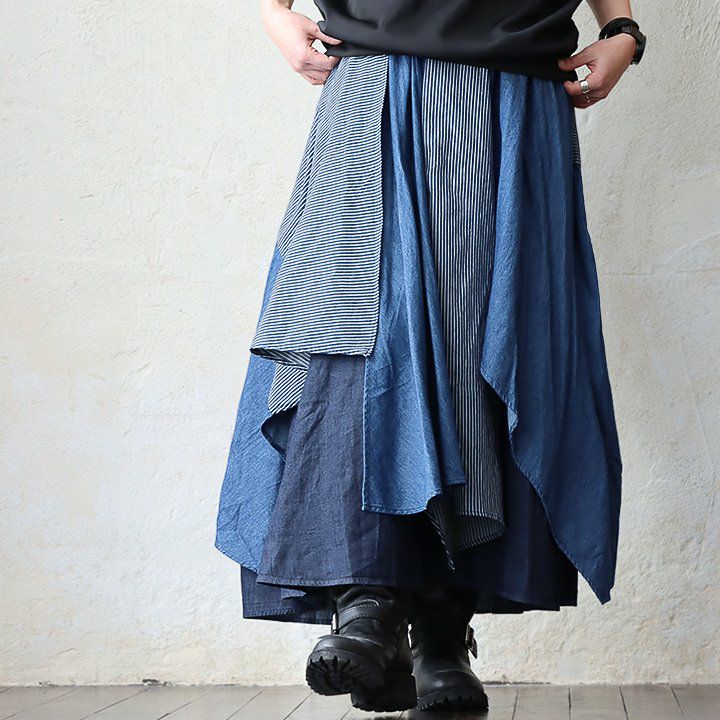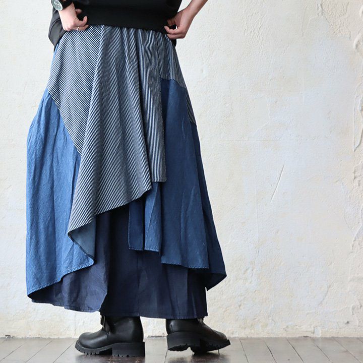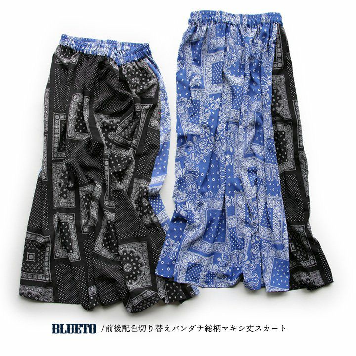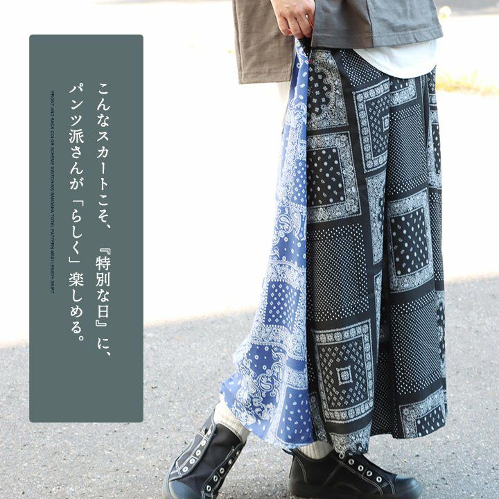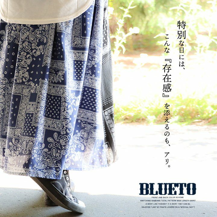 特別な日には、こんな『存在感』を添えるのも、アリ。 スカート マキシ丈スカート フレア Aライン 着痩せ 脚長 ロングスカート 前後 配色 切り替え 薄手 軽い 涼しい ウエストゴム マキシスカート レディース ゆったり かっこいい フレアスカート 大きいサイズ 大人 カジュアル アメカジ BLUETO ブルート