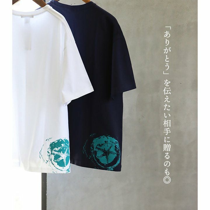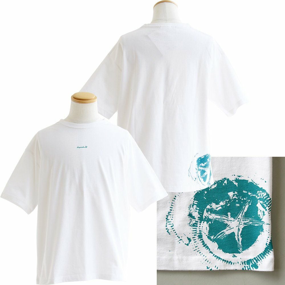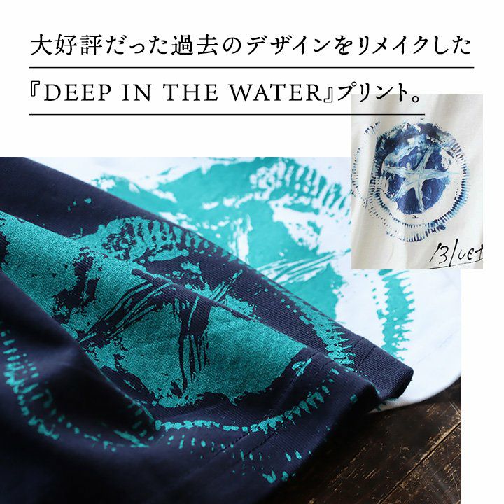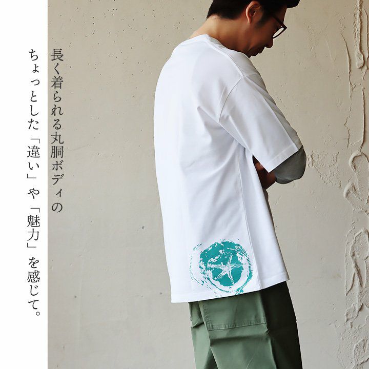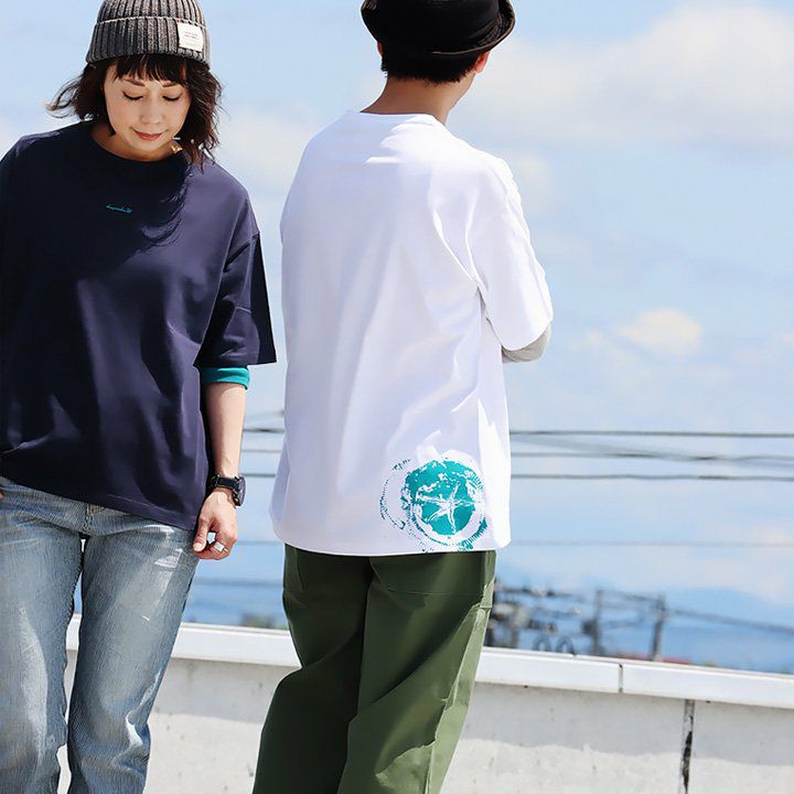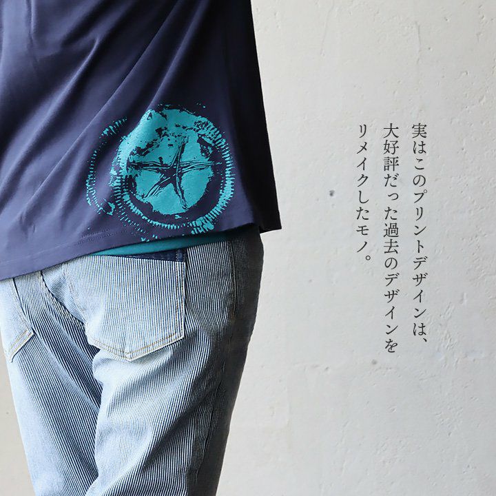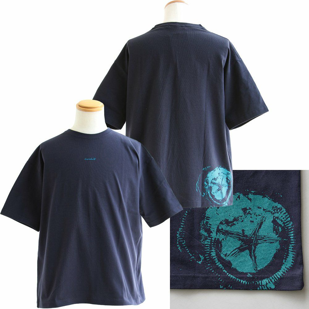 Remake DEEP IN THE WATER. Tシャツ 半袖 五分袖 ワイド 着痩せ ティーシャツ コットン 綿100% カジュアル 月 星 スター プリント ユニセックス 軽い しっかり 丈夫 メンズ レディース すっきり ロング ビッグtシャツ 夏 BLUETO ブルート