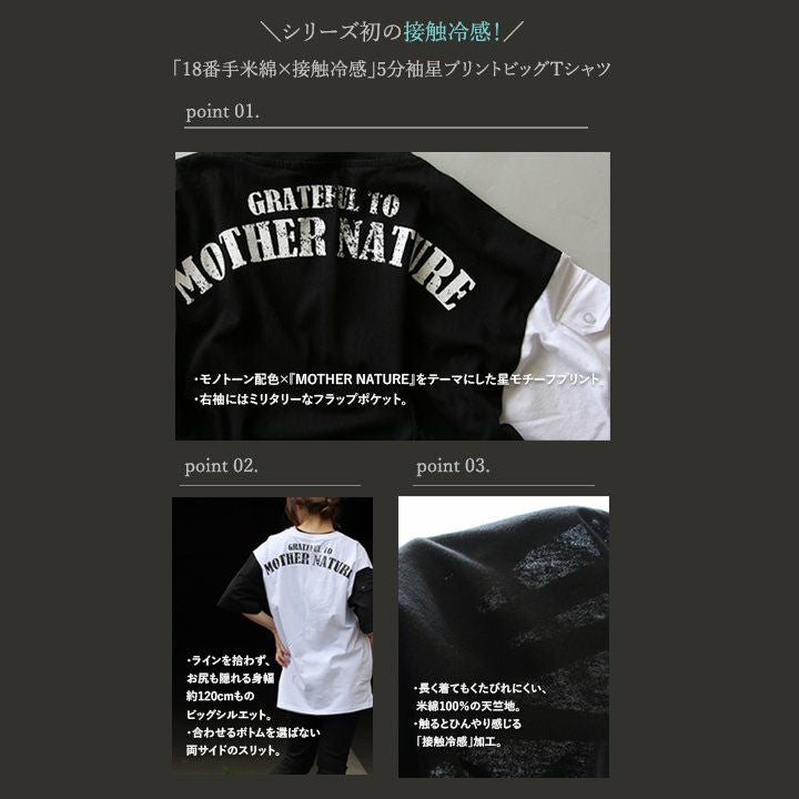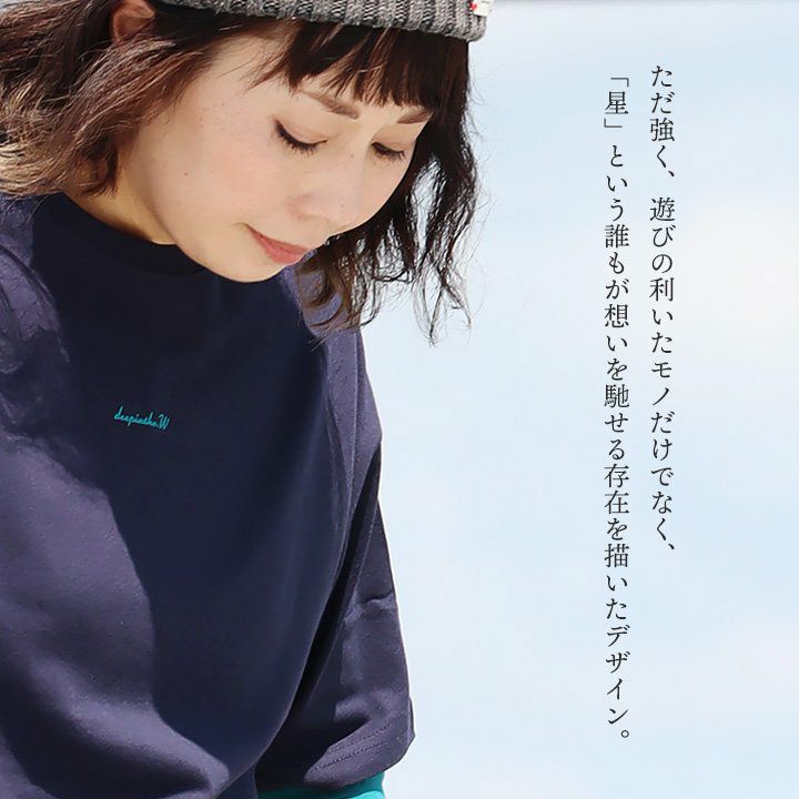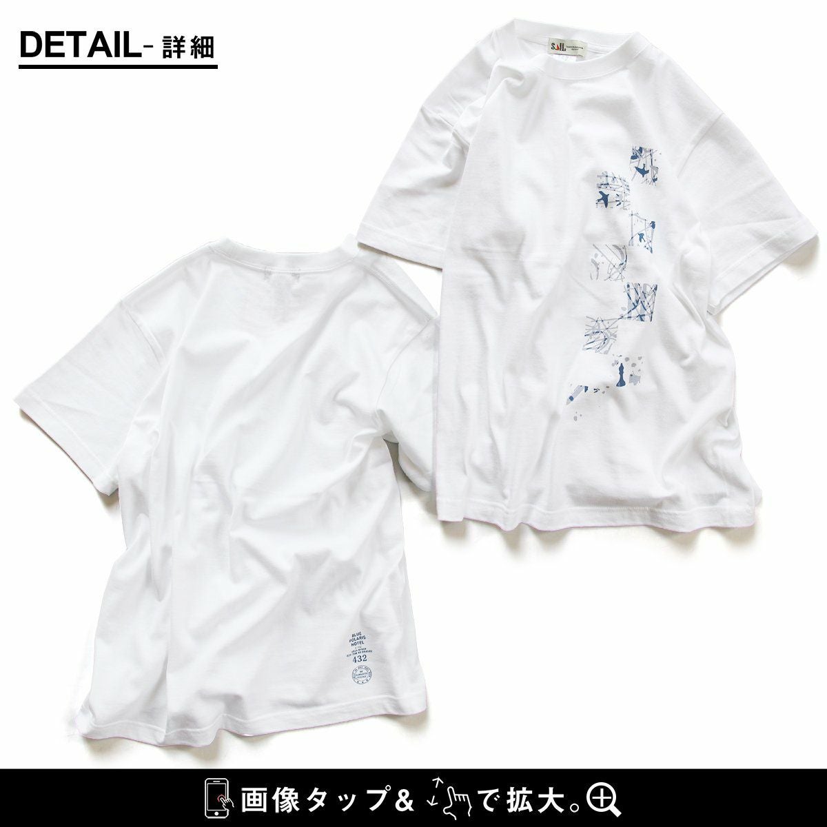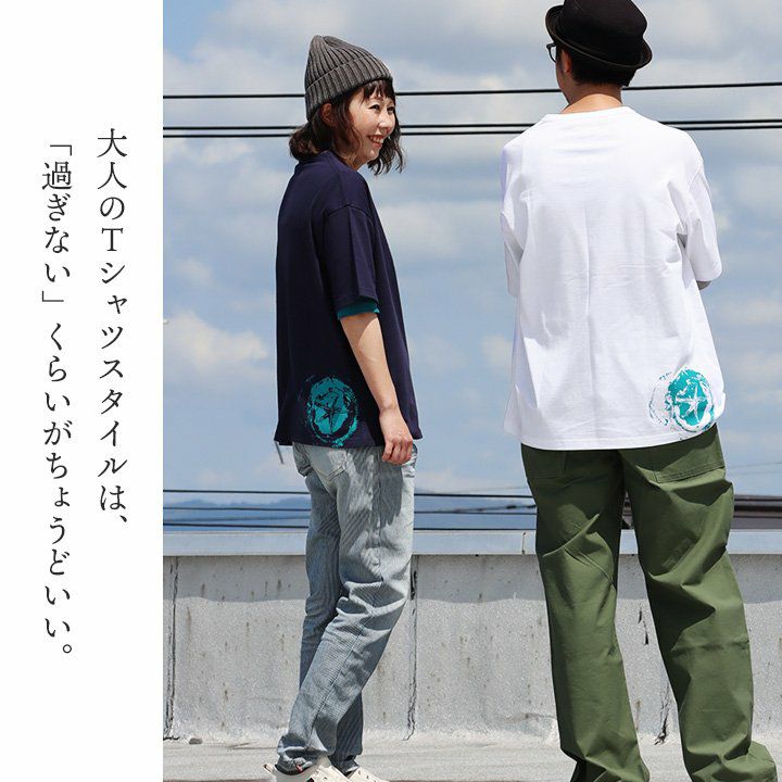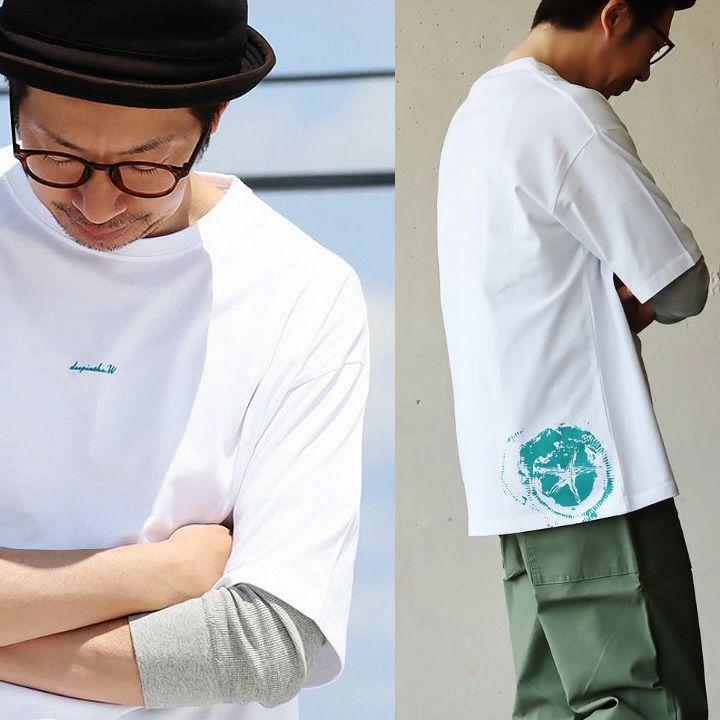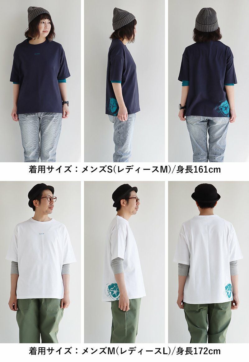 Remake DEEP IN THE WATER. Tシャツ 半袖 五分袖 ワイド 着痩せ ティーシャツ コットン 綿100% カジュアル 月 星 スター プリント ユニセックス 軽い しっかり 丈夫 メンズ レディース すっきり ロング ビッグtシャツ 夏 BLUETO ブルート
