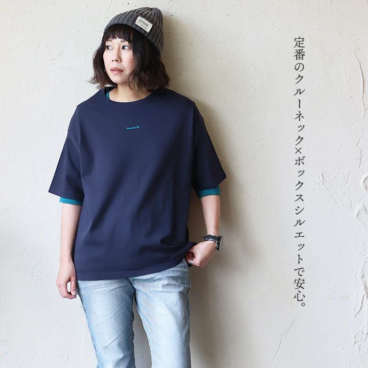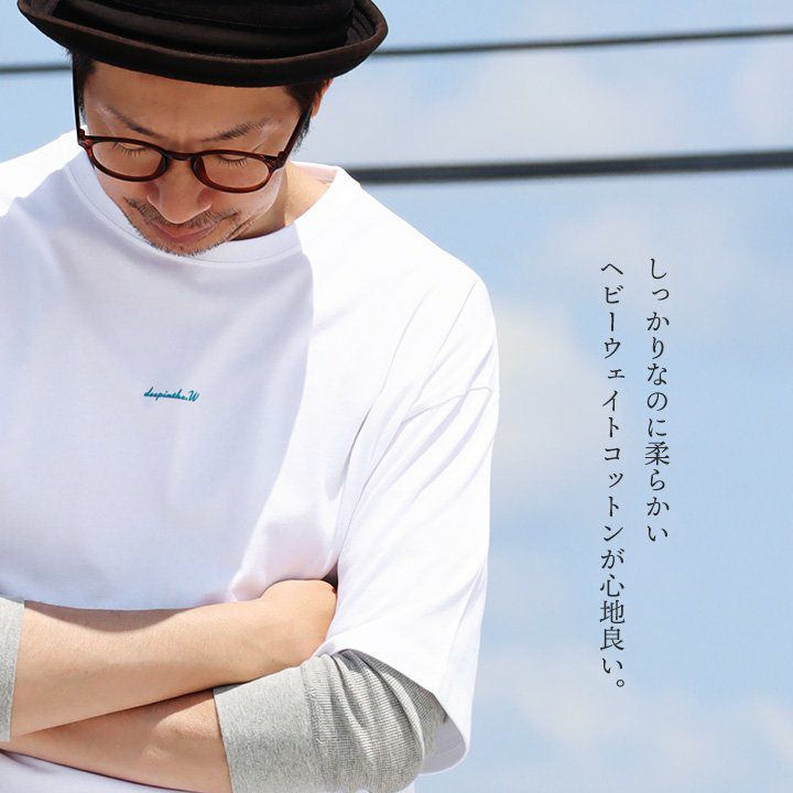 この「ゆるさ」と「厚さ」が、重ね着に丁度いい。 重ね着 カットー メンズ レディース 5分袖 着痩せ ワイド ビッグシルエット 綿100 コットン 柔らかい 軽い 伸縮性 襟 裾 リブ ゆったり 二の腕 体型 カバー 刺繍 秋 大人 カジュアル パティ Mr.Lumberjack ミスターランバージャック