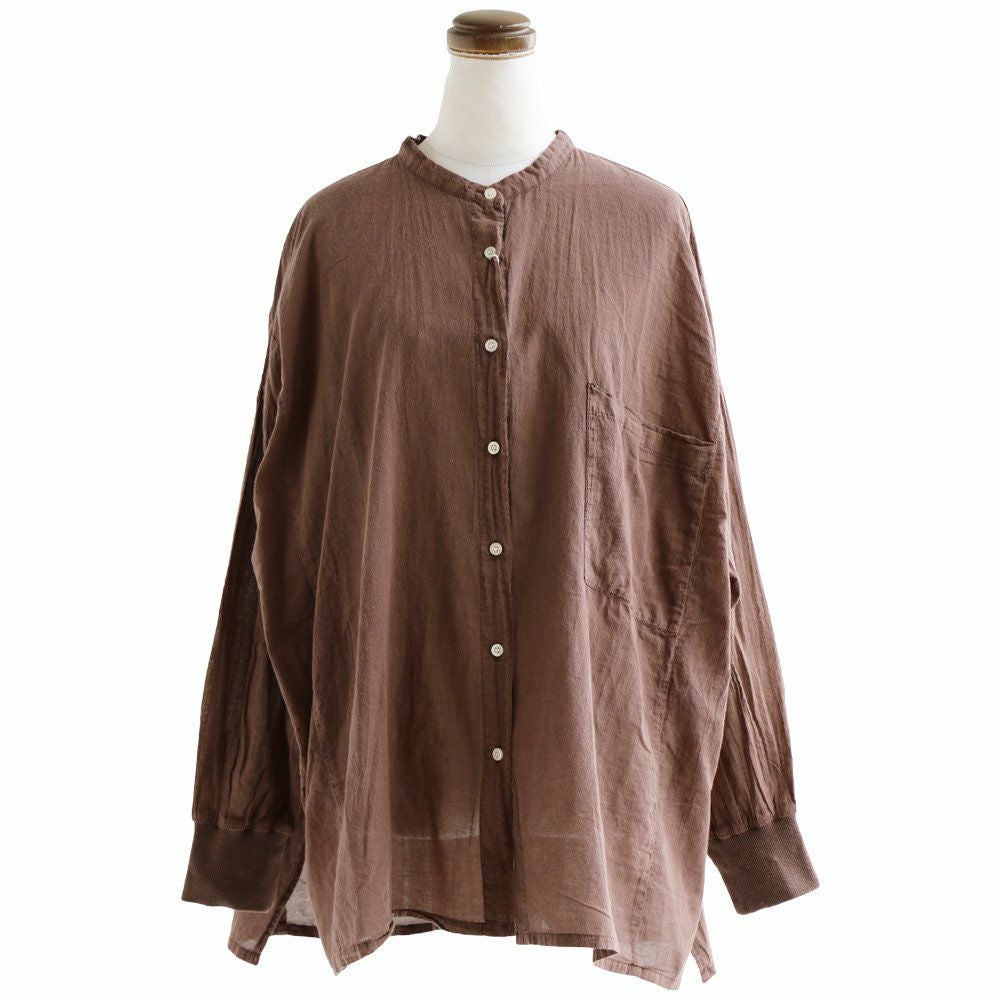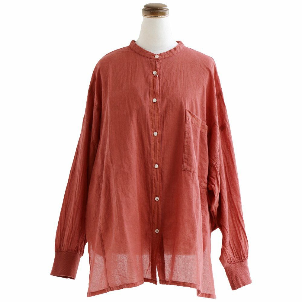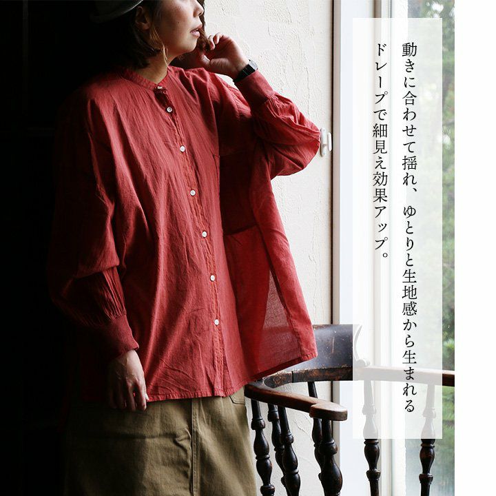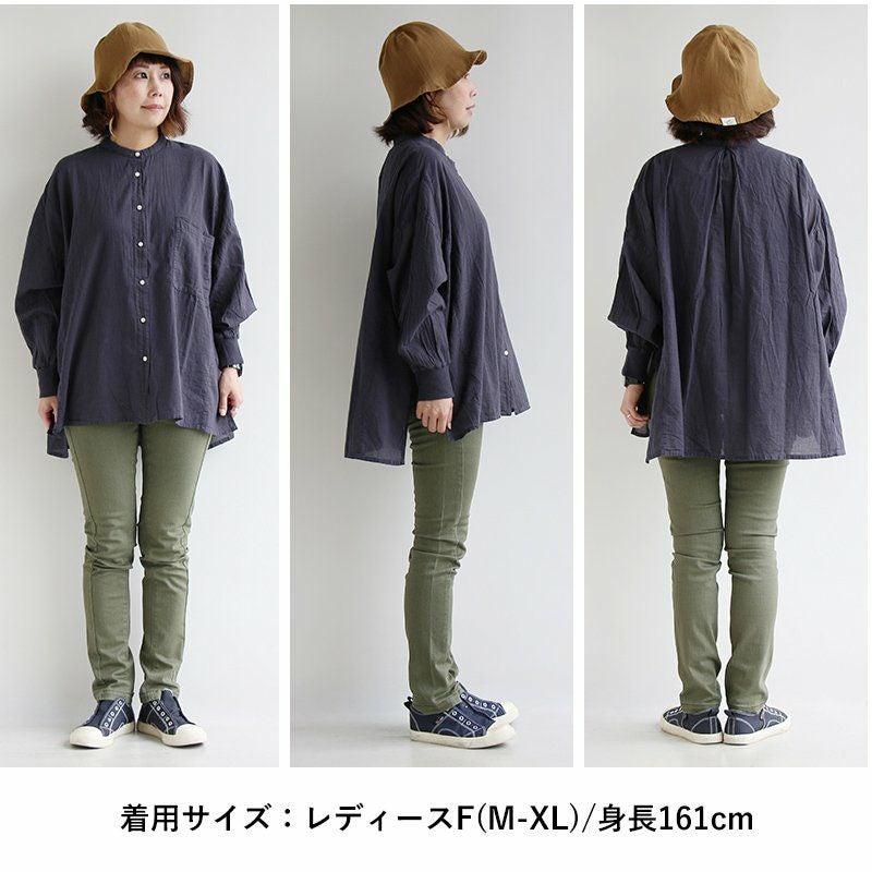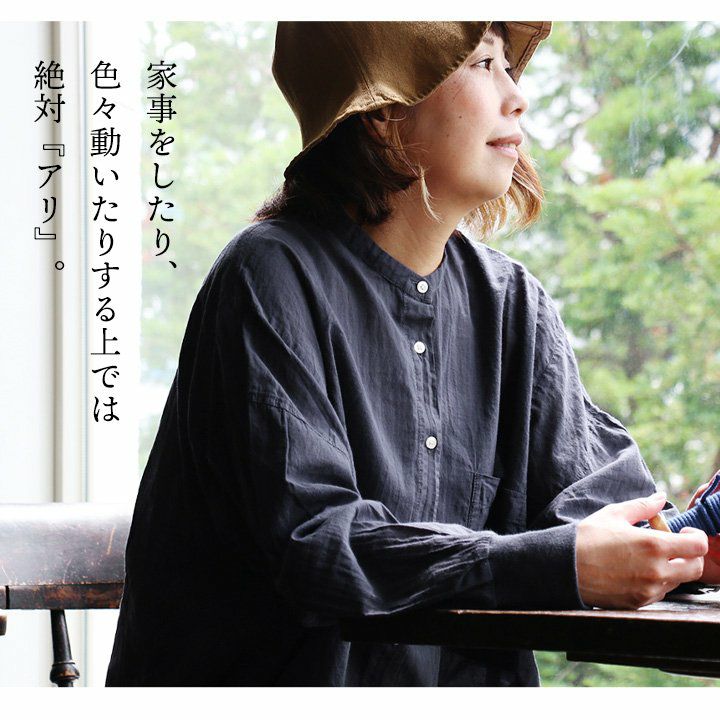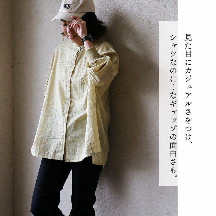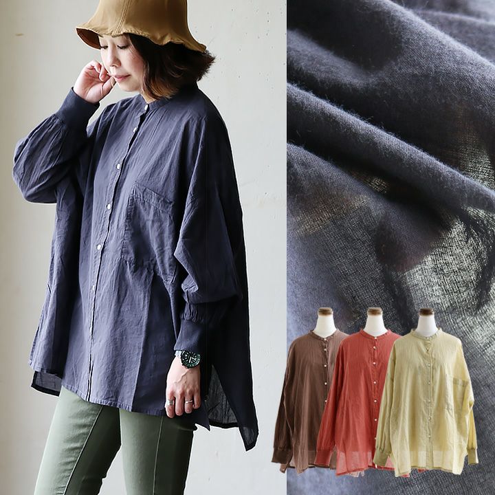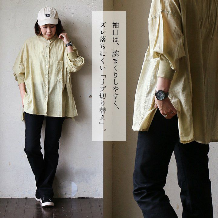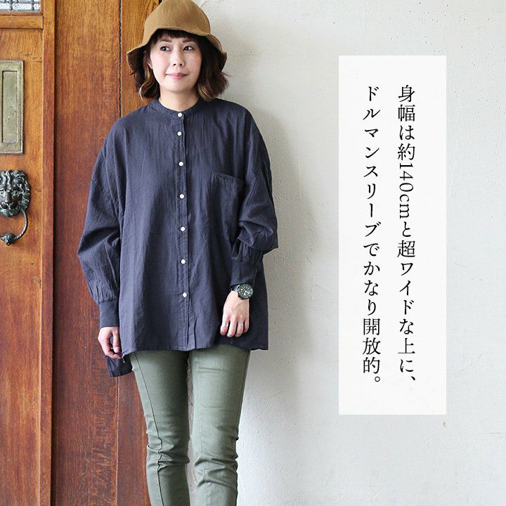 家事をしたり、色々動いたりする上では絶対“アリ”。 チュニック シャツ 長袖 レディース ワイド ドルマン バンドカラー 胸ポケット 袖リブ 切り替え 綿100% 薄手 カーゼ風 軽い 着痩せ 大きいサイズ 無地 シンプル キレイ おしゃれ SAIL セイル