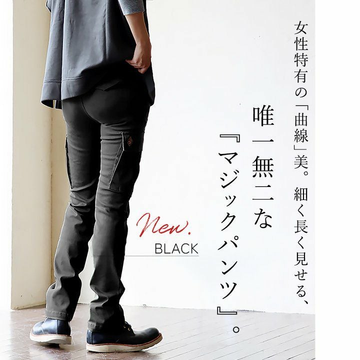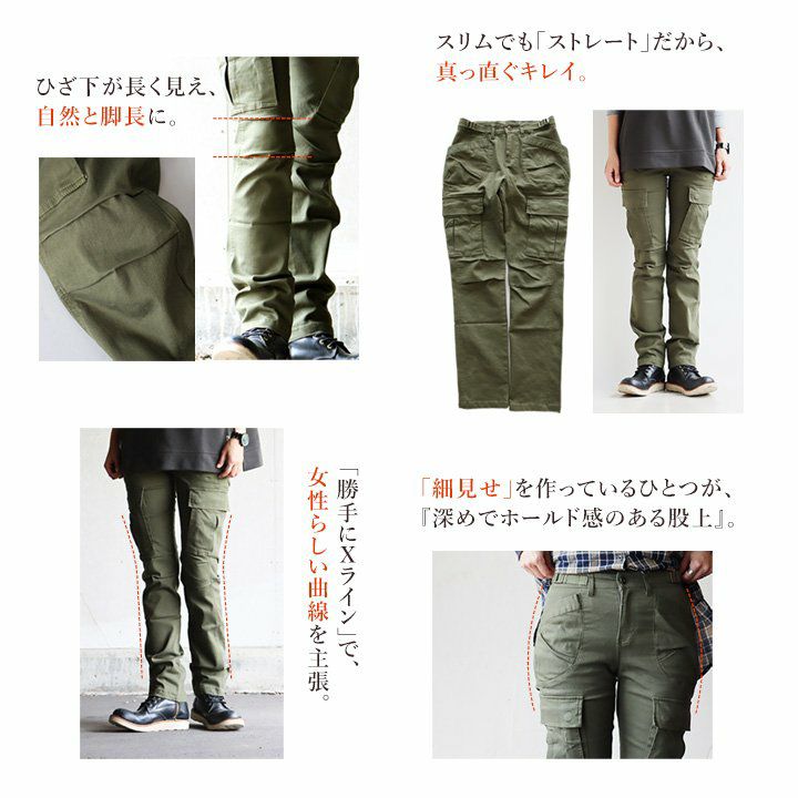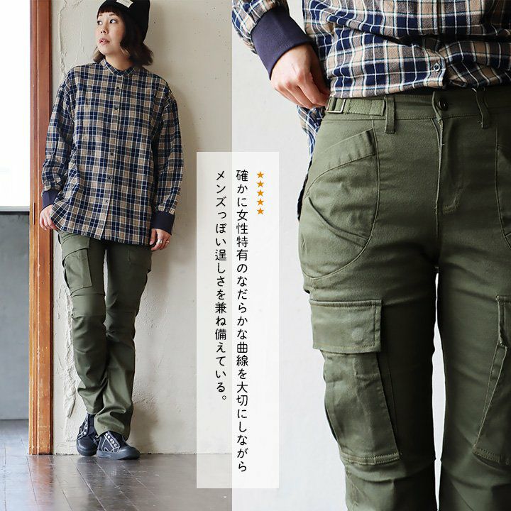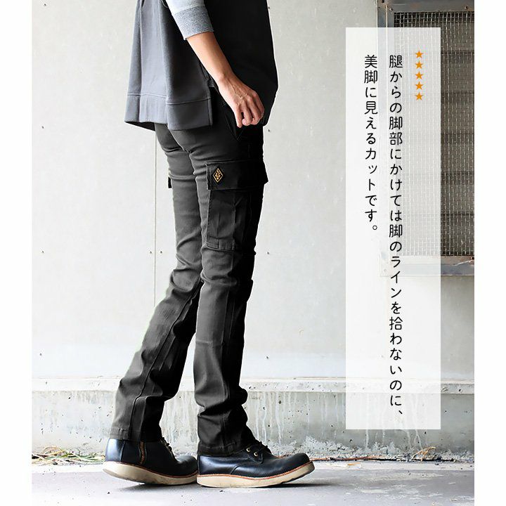 女性特有の「曲線」美。細く長く見せる、唯一無二な『マジックパンツ』。 フレア カーゴパンツ レディース 脚長 足長 美脚 ストレッチ 股上 深め フレアパンツ ブーツカット スリム フィット ミリタリーパンツ ワーク かっこいい しっかり 丈夫 小尻 30代 40代 50代 ウエスト 調整 可 YKK ジップ OAR’S オールズ