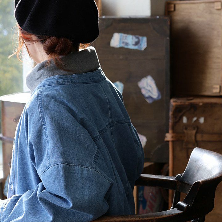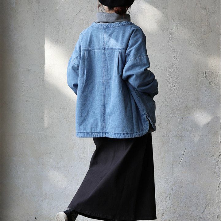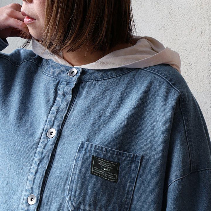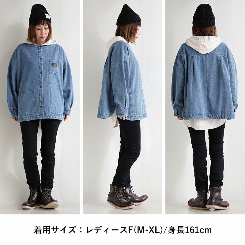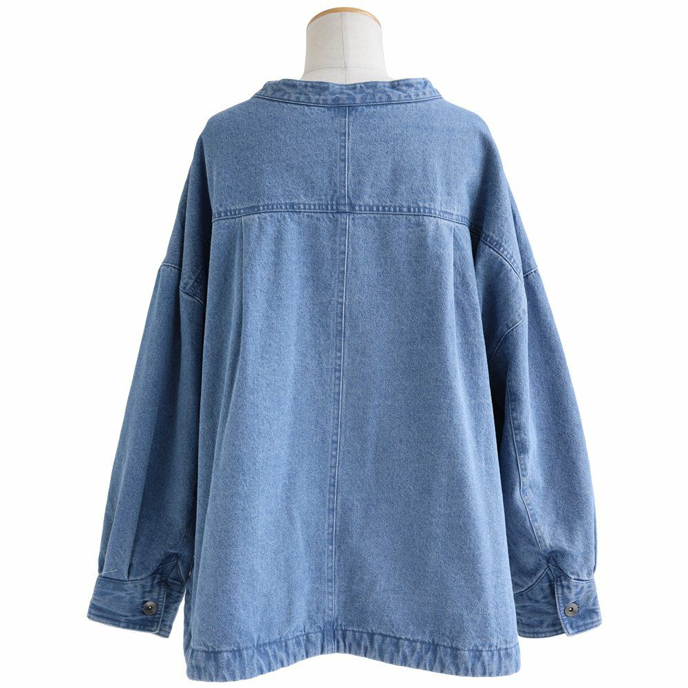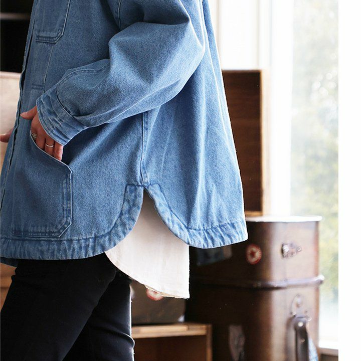 デニムなのにゆったりしていて動き易くて、暖かく軽やか。今こそ、カバーオール! デニムジャケット レディース 暖かい 裏フリース ワイド Gジャン 着痩せ すっきり ノーカラー 軽い 柔らか 綿100 コットン お尻 隠れ 体系 カバー ラウンドヘム ポケット 重ね着 ゆったり 大きめ カジュアル 大人 カジュアル パティ BLUETO ブルート