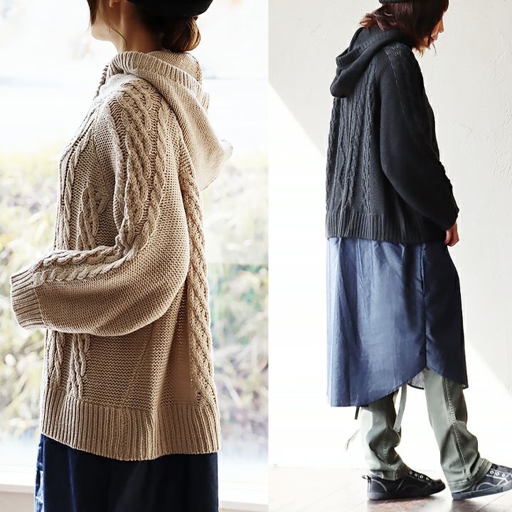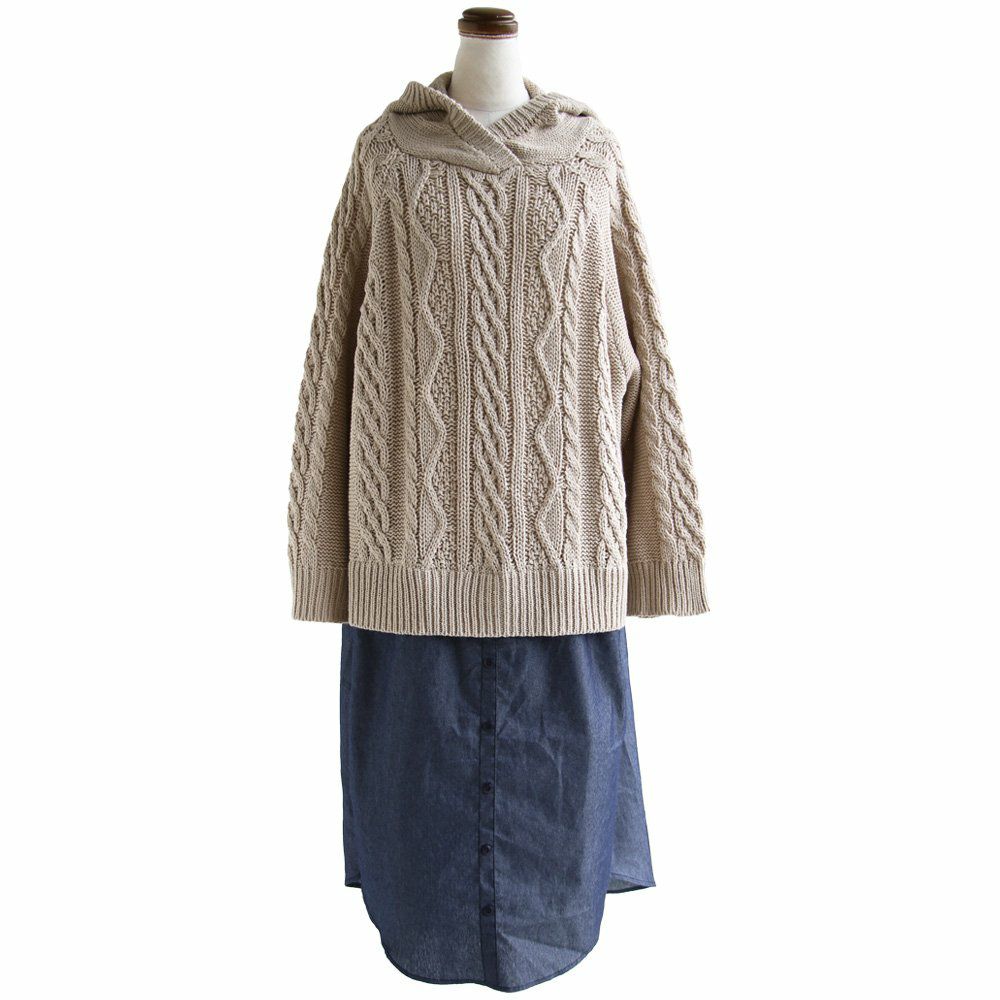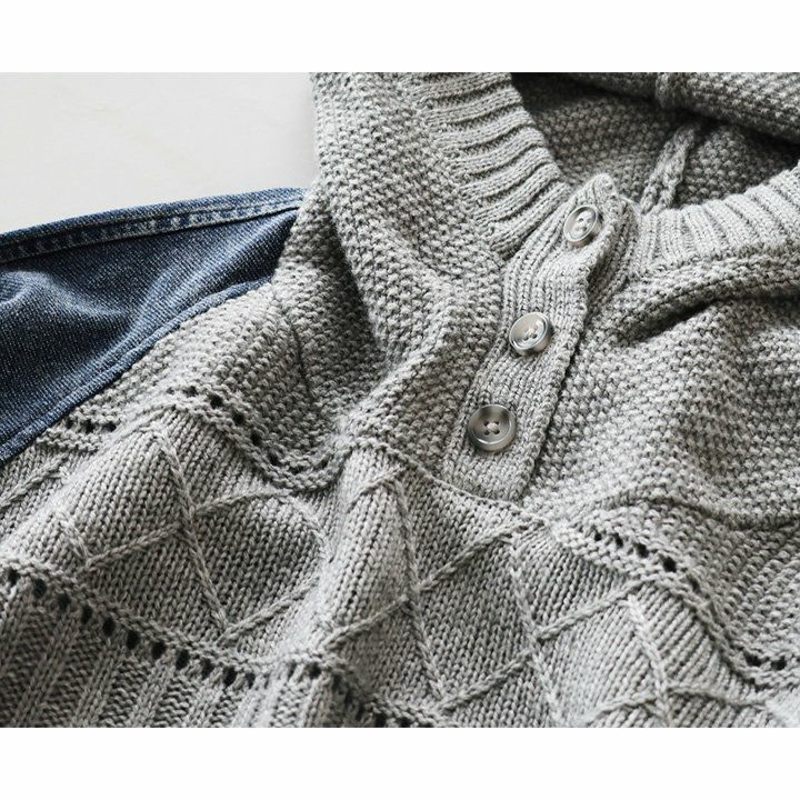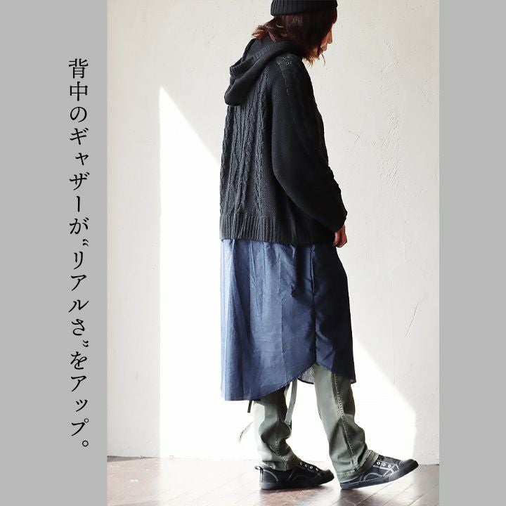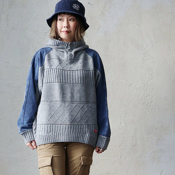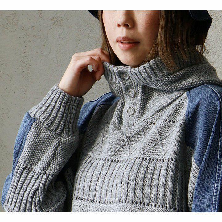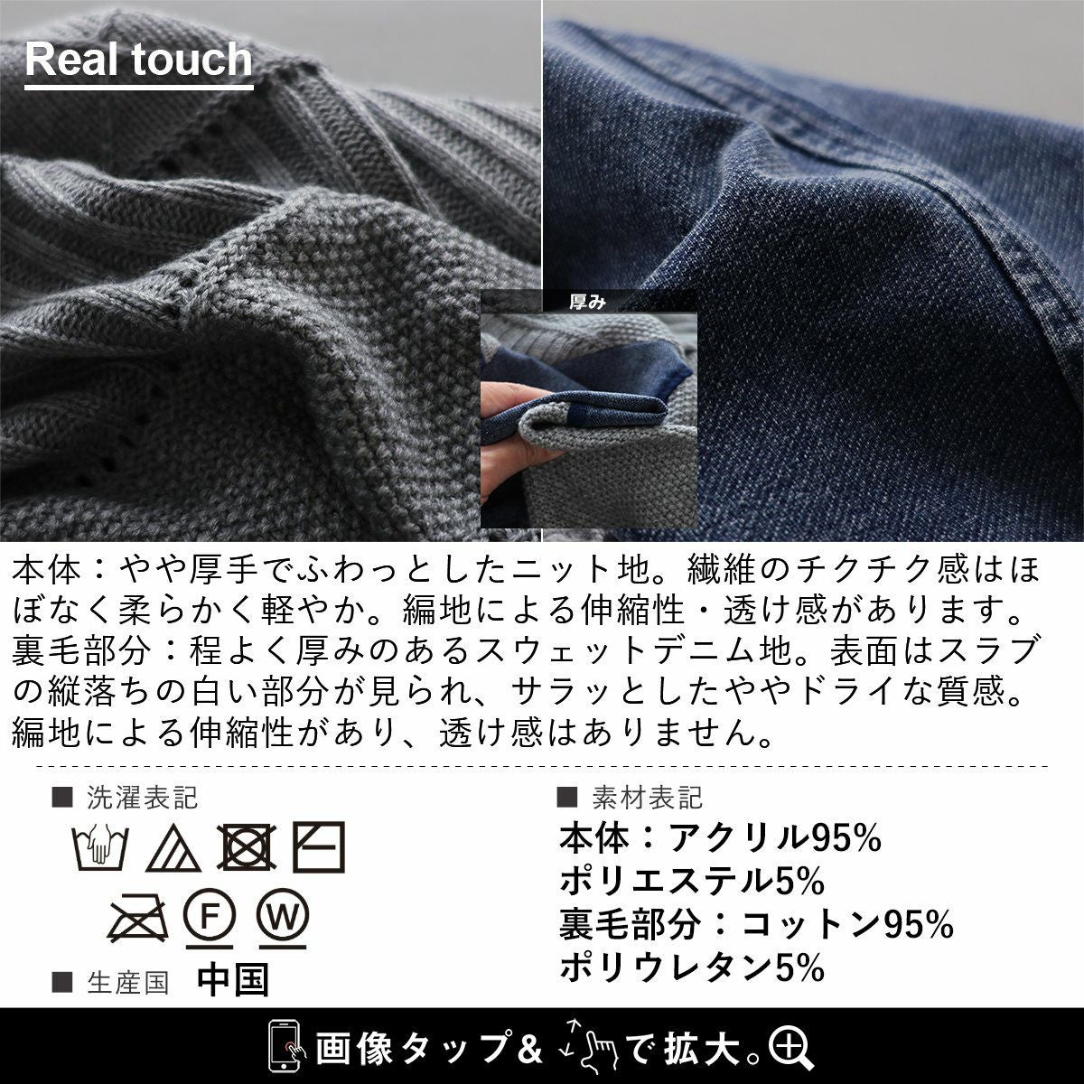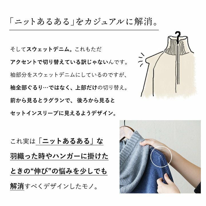 「着たときも、着ない時も考えられている」、カジュアル過ぎないドッキングパーカー。 パーカー ニットデニム 切替 レディース プルパーカー プルオーバー ボリュームネック ロング 着痩せ ワイド 暖かい ポケット ラグラン スウェットデニム クレイジーニット 切り替え 首 袖 裾 リブ 大きいサイズ お尻 体型 カバー カジュアル パティ TOneontoNE トーン