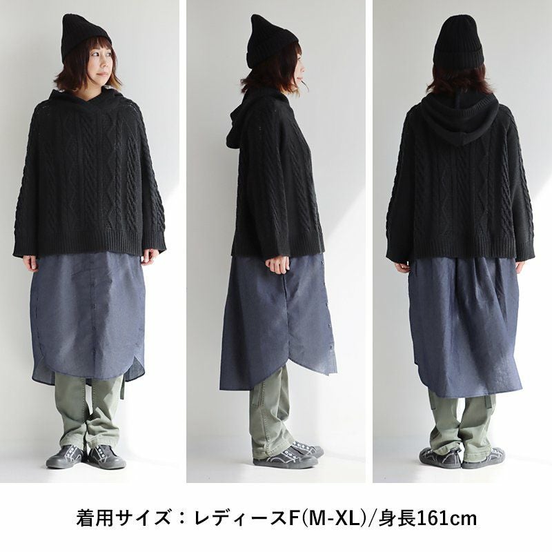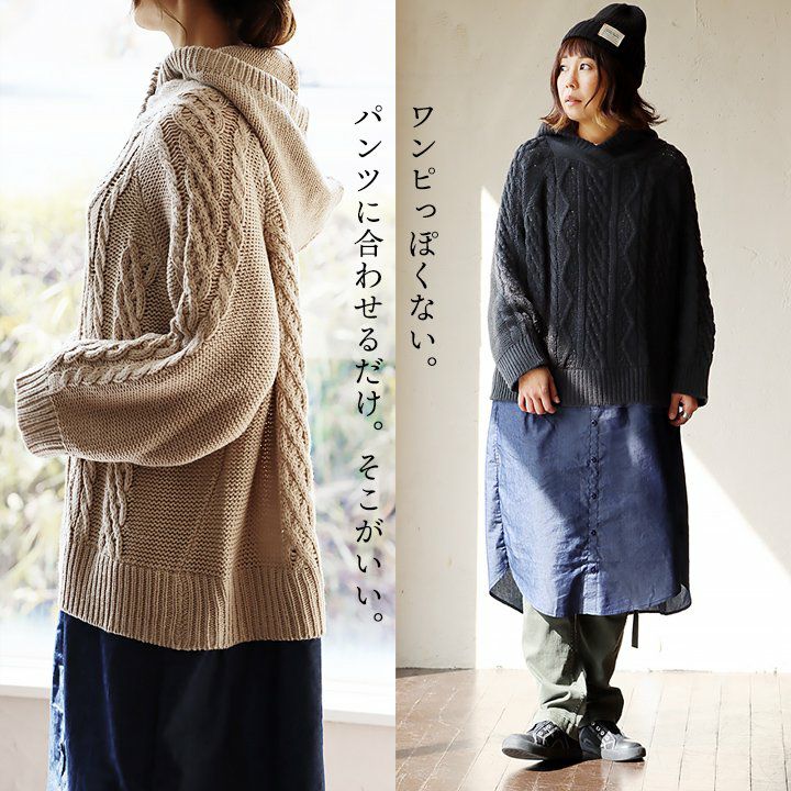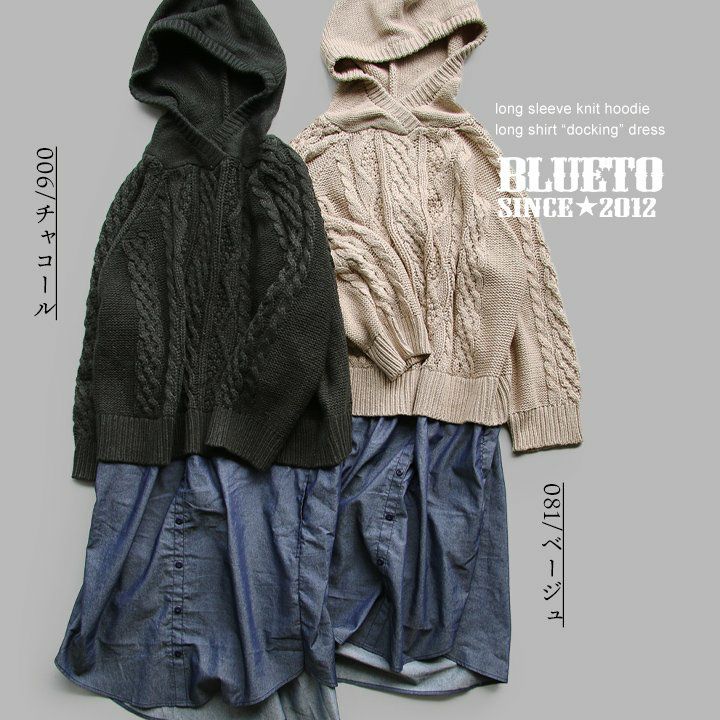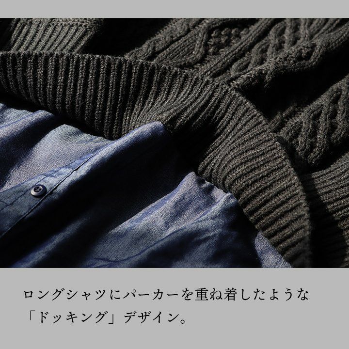 ワンピっぽくない。パンツに合わせるだけ。そこがいい。 ドッキング ワンピース レディース 長袖 ロング丈 重ね着風 パーカー ニット シャツ ワイド 着痩せ パーカーワンピ シャツワンピース 無地 秋 冬 BLUETO ブルート