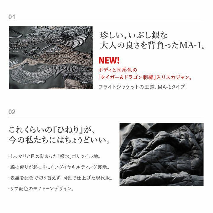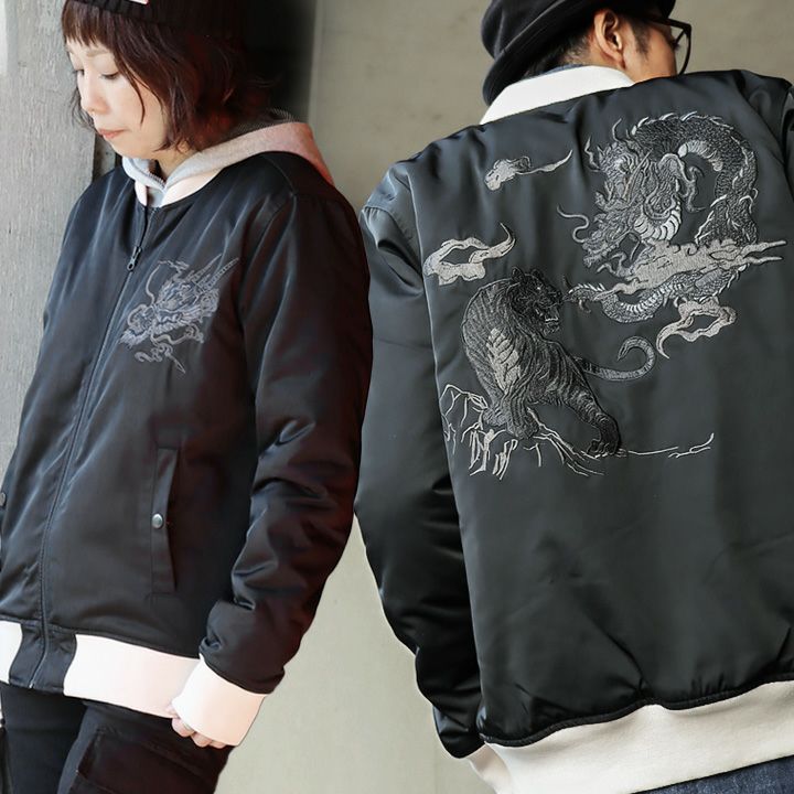 「スカ」し過ぎてなくて、いい「ジャン」! ブルゾン スカジャン MA-1 暖かい 中綿 ジャケット メンズ レディース タイガー 虎 ドラゴン 龍 竜 刺繍 撥水 裏地キルティング アウター 軽量 防寒 防風 アメカジ ヴィンテージ 冬 大人 カジュアル パティ ALISTAIR アリステア