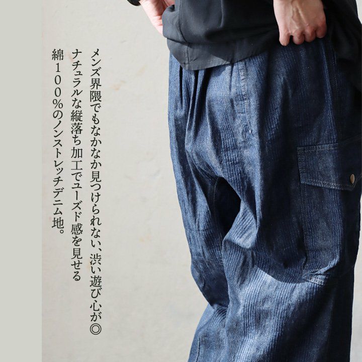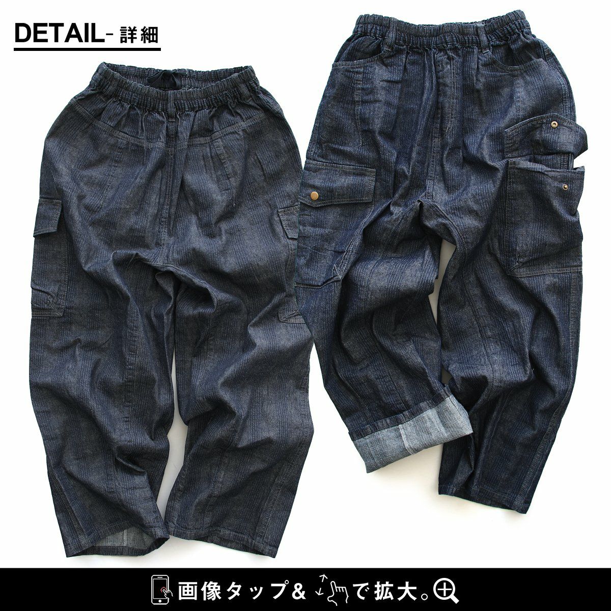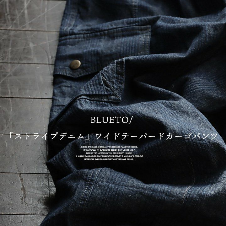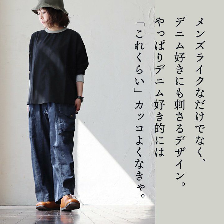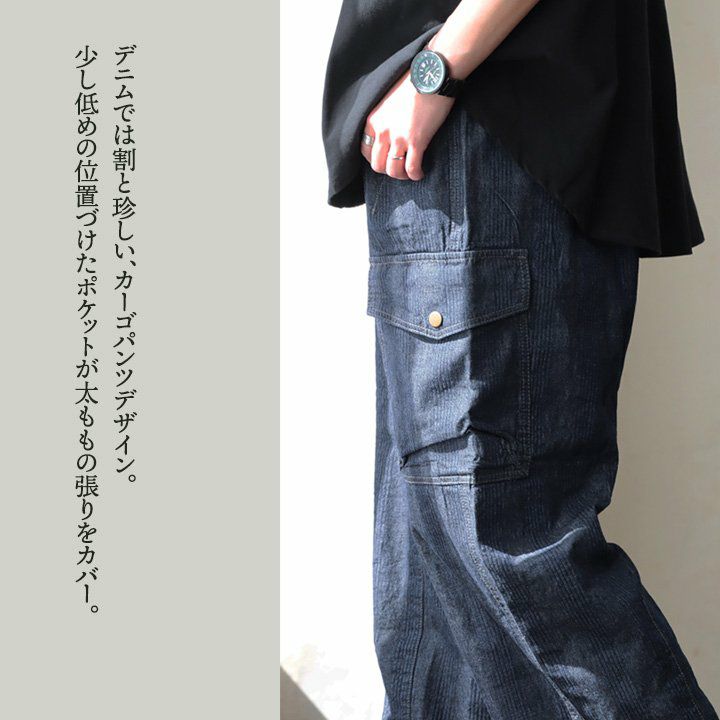 デニム好き的には「これくらい」カッコよくなきゃ。 パンツ テーパード レディース ジーンズ カーゴ ポケット ストライプ ウエスト 紐 薄手 ノンストレッチ ジャガードデニム ワイド ゆったり 着痩せ 細見え おしゃれ カジュアル メンズライク 春 パティ BLUETO ブルート