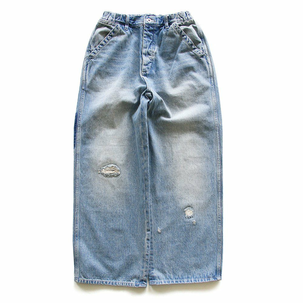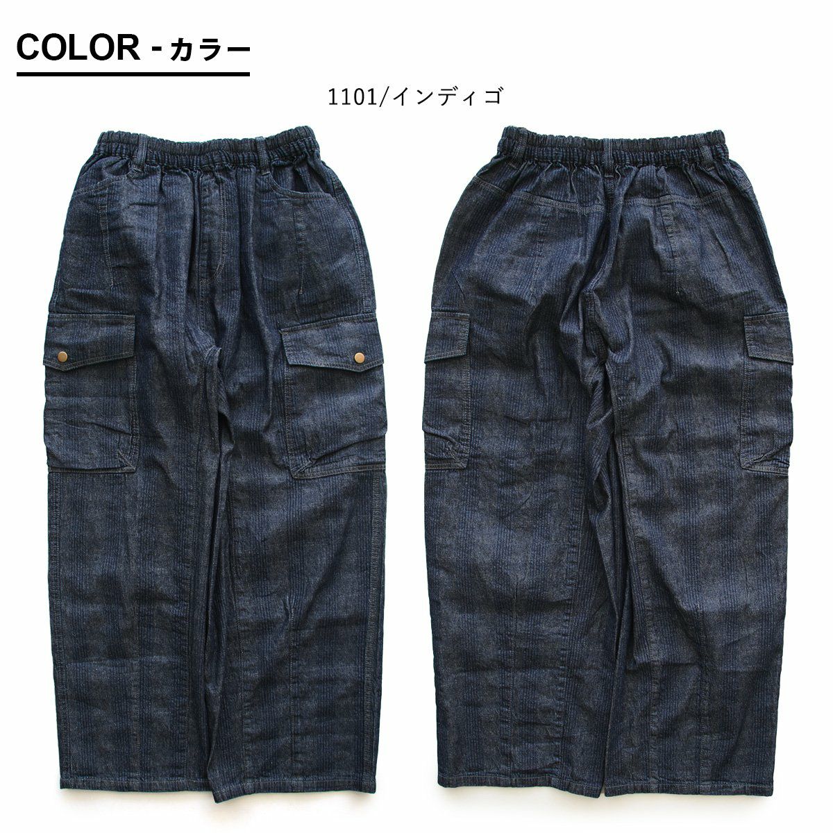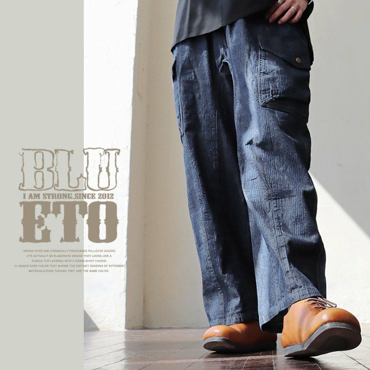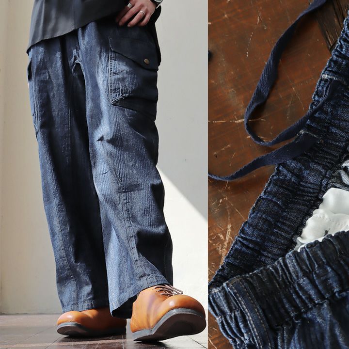 デニム好き的には「これくらい」カッコよくなきゃ。 パンツ テーパード レディース ジーンズ カーゴ ポケット ストライプ ウエスト 紐 薄手 ノンストレッチ ジャガードデニム ワイド ゆったり 着痩せ 細見え おしゃれ カジュアル メンズライク 春 パティ BLUETO ブルート