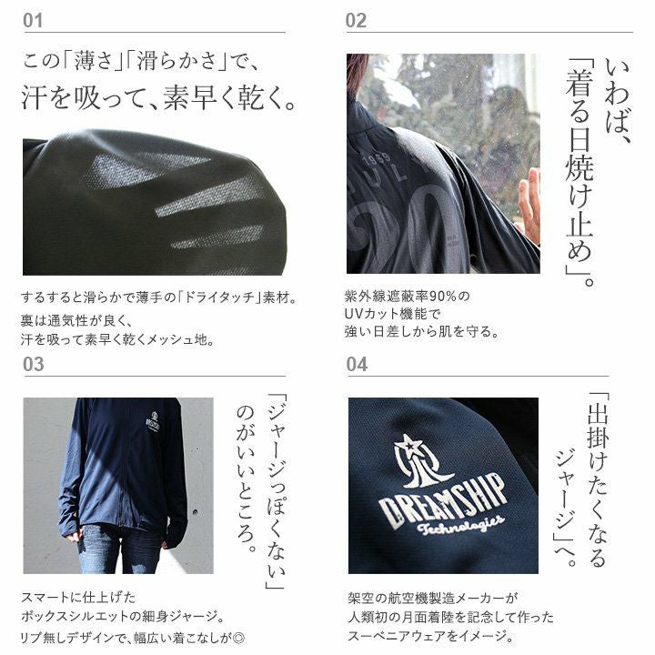「着る、日焼け止め」。しかも、「涼しく、ドライ」。 ジャージ ラッシュガード 長袖 メンズ レディース uvカット アポロ月面到着 バック プリント 吸水 速乾 涼しい 軽い ドライ タッチ 紫外線防止 薄手 おしゃれ ジップアップ 春 夏 カジュアル パティ TOneontoNE トーン