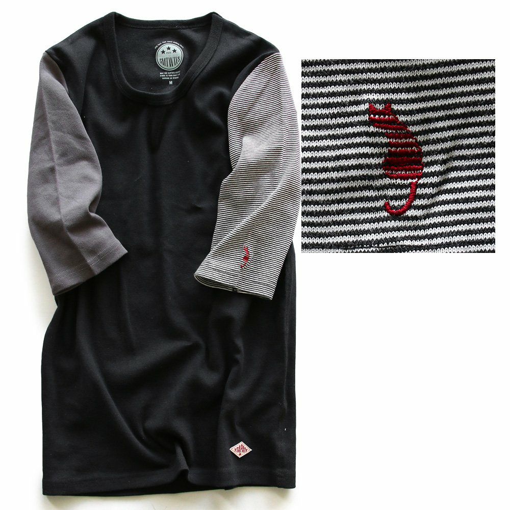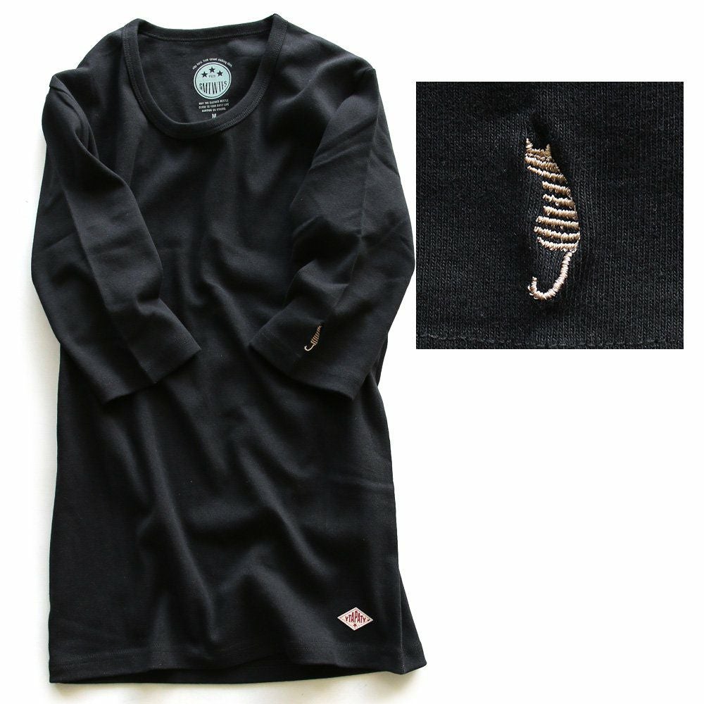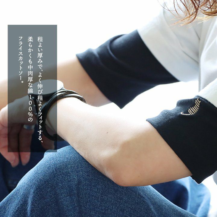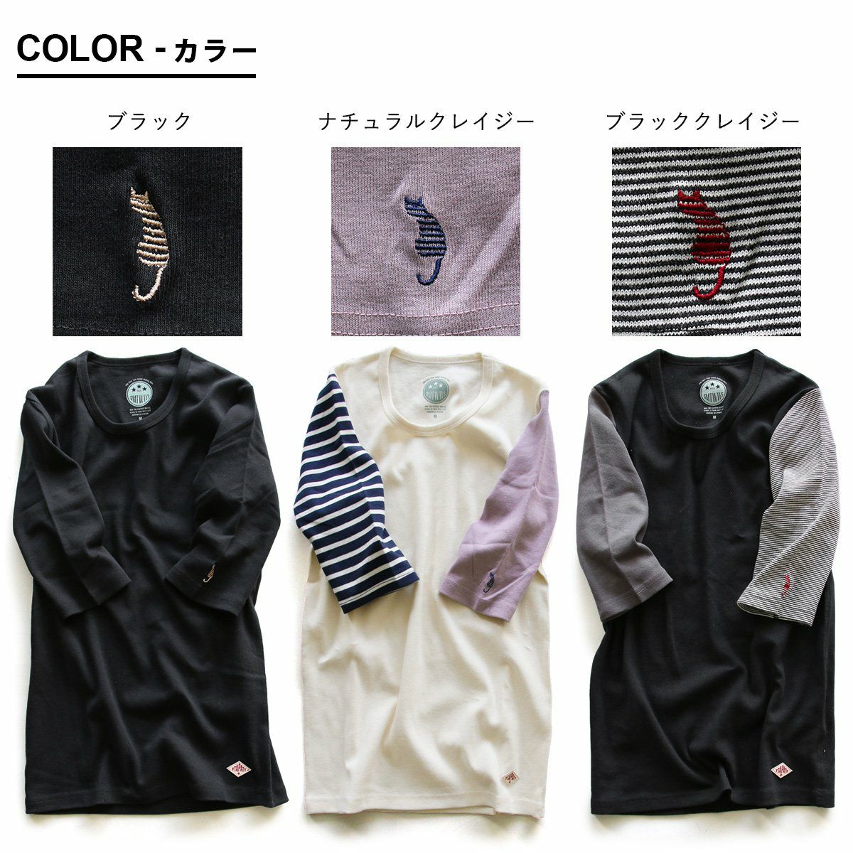 【メール便50】家事も仕事も1枚でも重ね着でも、すっきり楽々! カットソー 五分袖 tシャツ レディース メンズ 猫 刺繍 重ね着 ストレッチ 綿100% コットン スリム フィット 半袖tシャツ 5分袖 丈夫 しっかり アシメ 配色 カジュアル パティ PATY パティ