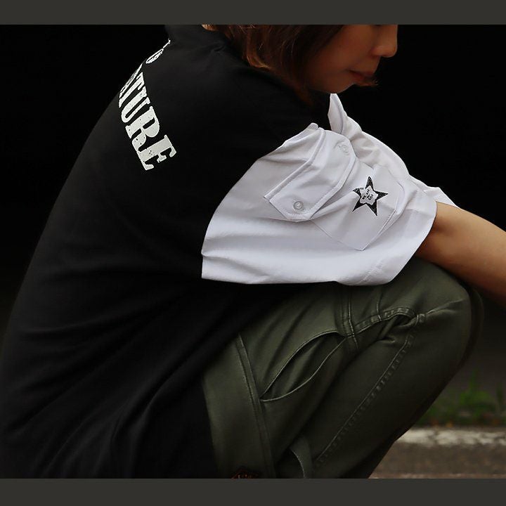U.S. Military STAR★ 【訳あり】tシャツ 五分袖 アメカジ メンズ レディース カッコいい 綿100% コットン しっかり 丈夫 ワイド すっきり 着痩せ 重ね着 二の腕 お尻 カバー 半袖 ミリタリー ポケット 星 ロゴ プリント パティ OAR’S オールズ