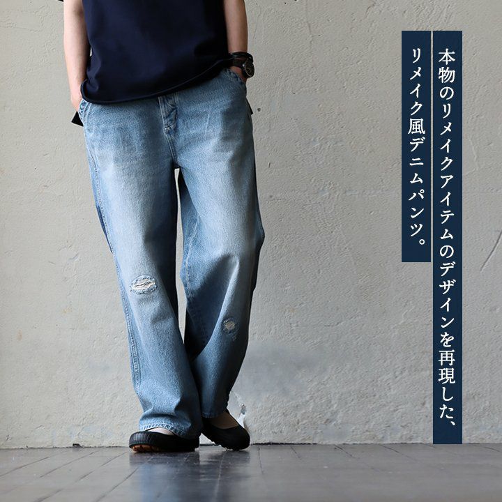 気温が高くても、デニムを穿くなら。 gym master × Mr.Lumberjack 【訳あり】デニム パンツ テーパード メンズ レディース 綿100% 薄手 通気性 配色切り替え ワンウォッシュ ブルー ウエストゴム ゆったり 体型カバー 着痩せ 夏 涼しい アウトドア パティ コラボ ジムマスター×ミスターランバージャック