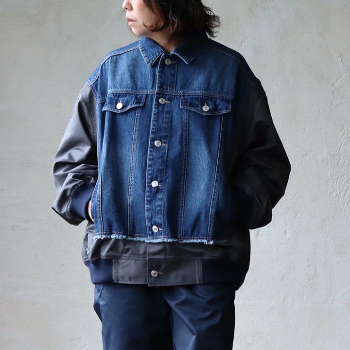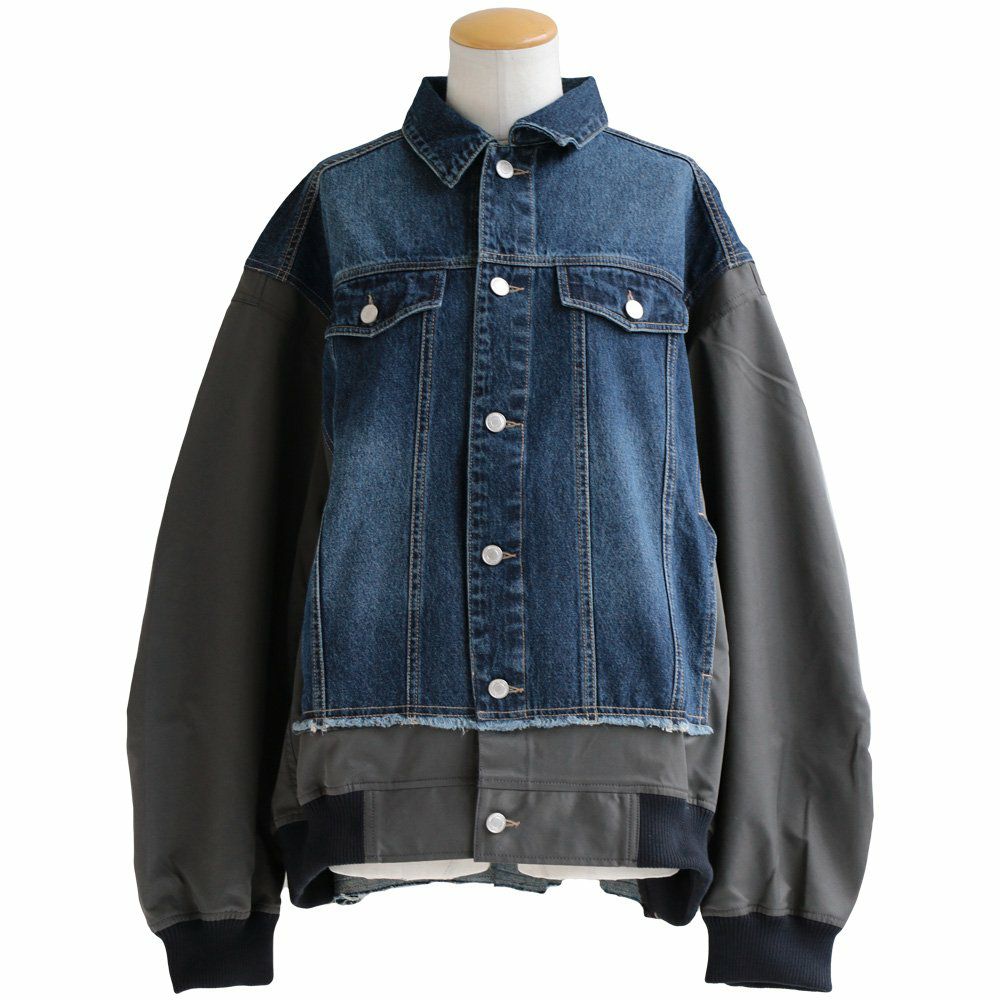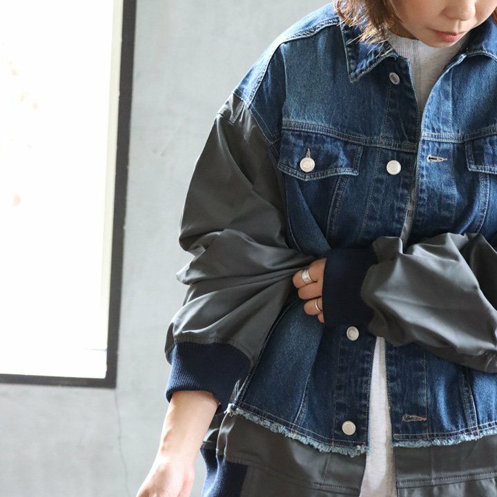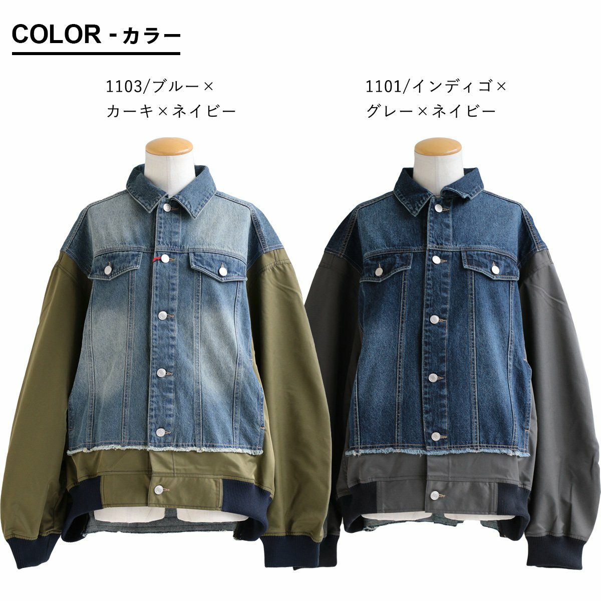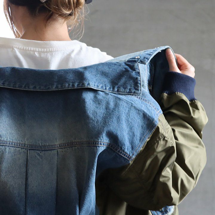 選べないからひとつにしてみたら、イイ感じ。 Gジャン ブルゾン レディース MA-1 10オンスデニム コンビ 切り替え 3ndタイプGジャン ドッキング クレイジー リメイク ポケット メンズライク ミリタリー カジュアル かっこいい アウター パティ BLUETO ブルート