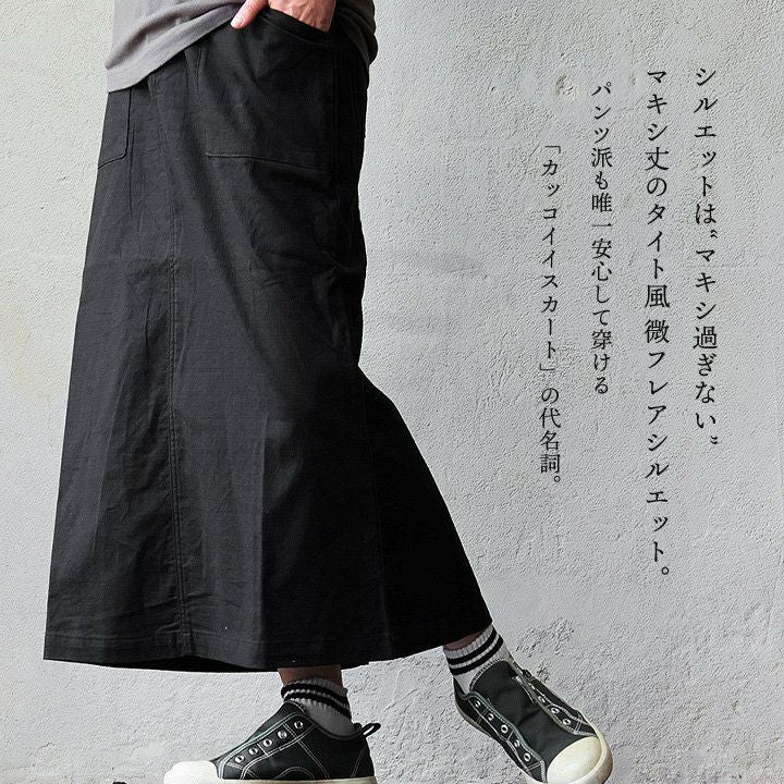 スッキリ見えなのに、動けて涼しい。 【訳あり】 涼しい スカート クライミングスカート レディース ロング丈 すっきり 細見え 綿麻 夏 コットン リネン ストレッチ ウエストゴム ウェビングベルト スリット 伸縮性 動きやすい 大人 カジュアル パティ OAR’S オールズ