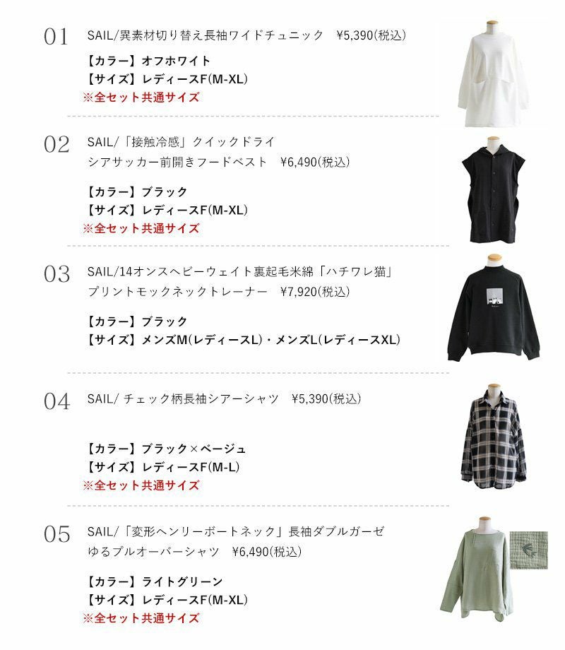 SAIL(帆) ― どんな強いアイテム(風)も推進力に変える。 コーディネートセット コーデセット 秋 セットアップ 秋 コーディネートセット 福袋 セットアップ レディース ユニセックス カジュアル お試し フリー メンズ パティ SAIL セイル