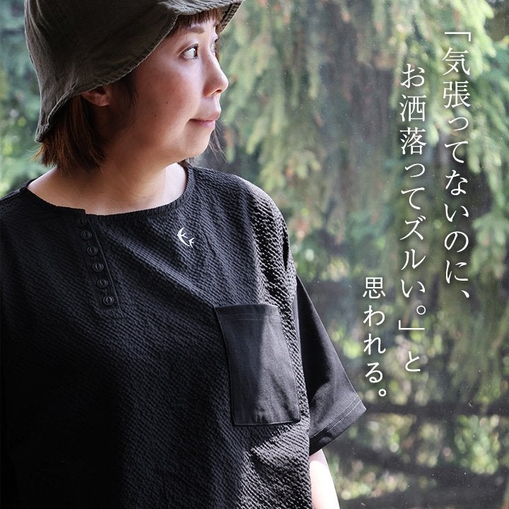 この見た目で、この生地はズルい。 涼しい 綿麻 ヘンリーネック シャツ メンズ レディース 夏 ストレッチ 半袖 五分袖 すっきり 着やせ ワイド しっかり 丈夫 伸びる ポケット お尻 体系 カバー バンドカラー リブ ポケット 刺繍 パティ Mr.Lumberjack ミスターランバージャック