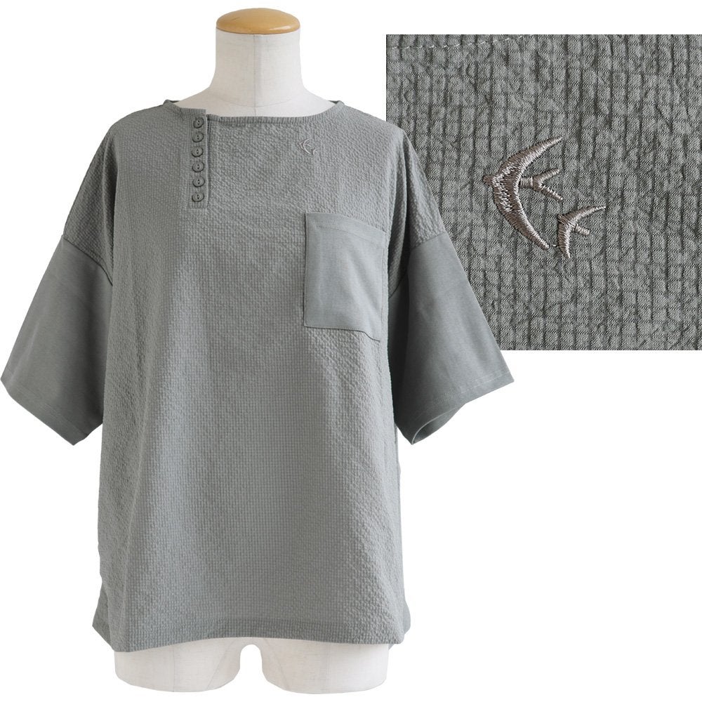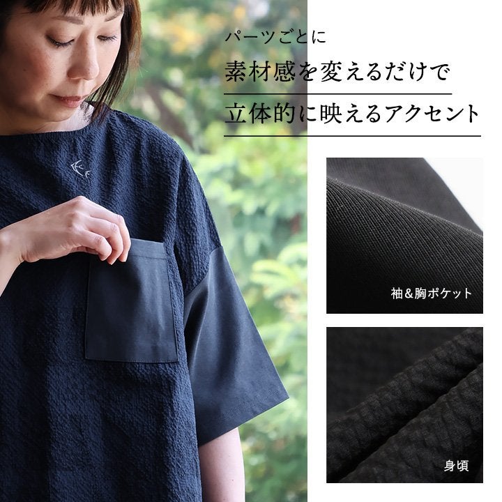 130cmオーバーの「着痩せ」シルエット! カットソー ボートネック 五分袖 ワイドシルエット ドロップショルダー Tシャツ 半袖 5分袖 米綿 コットン100% ラウンドヘム 裾ラウンド 無地 胸ポケット レディース 体系カバー 軽い 大きい 大人カジュアル トップス PATY パティ Souple スプル