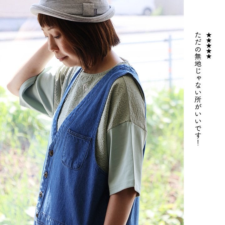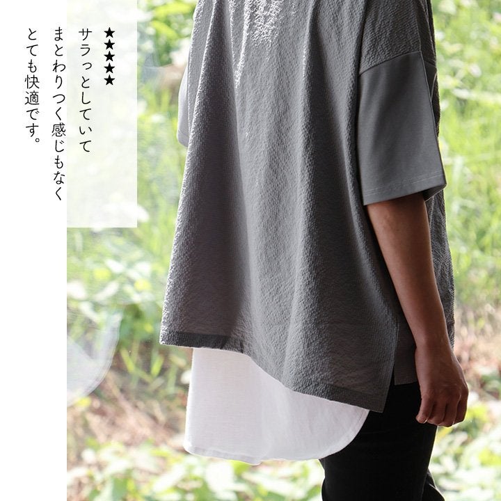 このゆるさだからこそ、「過ぎず」に楽しい。 【メール便50】 かっこいい チュニック 着やせ ワイド 五分袖 tシャツ 夏 レディース 異素材 切り替え 綿100 コットン 二の腕 お尻 体系 カバー リメイク風 古着風 ドルマン tシャツ 重ね着 カジュアル パティ OAR’S オールズ
