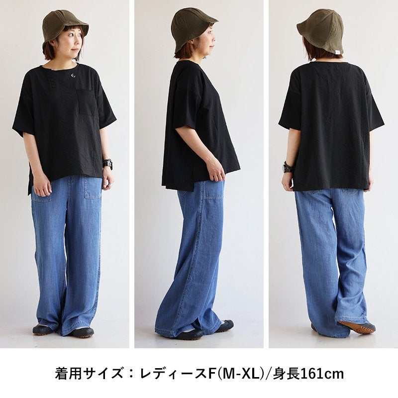 「サラっ」「スルっ」「ストン」で、「着膨れない」ビッグT。 【メール便50】 着痩せ tシャツ レディース 夏 涼しい 伸びる シアサッカー 半袖 ワイド ロング丈 ドライ すっきり 軽い 速乾 冷感 洗える ポケット 二の腕 お尻 体系 カバー プルオーバー ユニセックス 大人 カジュアル パティ Mr.Lumberjack ミスターランバージャック
