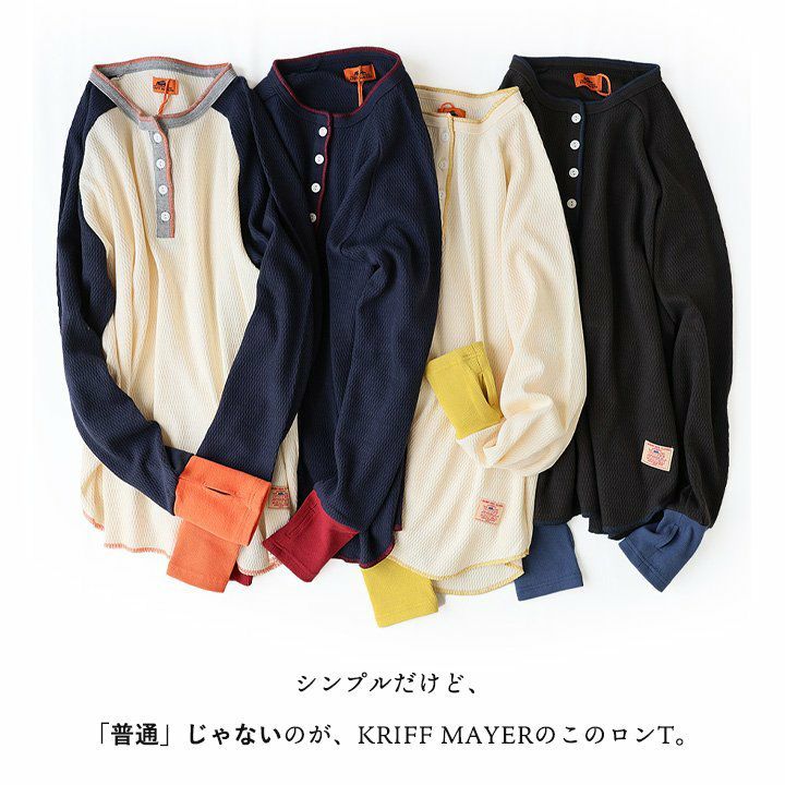 他の画像を見る 一枚着でも、重ね着でも、魅せたくなる『配色アソビ』。 KRIFF MAYER クリフメイヤー ロンT カットソー 長袖 ヘンリーネック レディース 重ね着 配色 リブ サムホール 指穴 ステッチ ピスネーム ワンポイント T/C ワッフル コットン ポリエステル 伸縮性 ゆったり カジュアル 秋 パティ 2~3日でお届け 販売価格 ¥ 4,950 税込 カートに入れる お気に入りに登録する