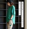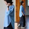 前身頃:コットン100%素材の薄手で肌馴染みが良く、なめらかでしなやかな柔らかさ。軽やかな肌心地で、伸縮性は斜め・横方向にあり光にかざすと若干透け感があります。