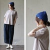 程よい厚みでハリがあり、さらっと肌触りの良いコットン100%素材。型崩れしにくいタフな生地感で季節問わず着用いただけます。伸縮性が縦・横・斜め方向にあり、光にかざすと若干透け感があります。