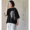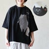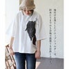 丸いフォルムに、ふてぶてしい顔。だけど憎めない。 Tシャツ 5分袖 レディース クルーネック 猫 ネコ プリント 配色 綿100 コットン ゆったり 大きいサイズ 体型カバー 二の腕 カジュアル 夏 夏服 パティ COLORK カラック