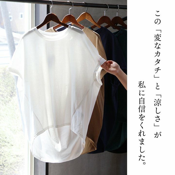 他の画像を見る この「変なカタチ」と「涼しさ」がわたしに自信をくれました。 ドルマン Tシャツ レディース 着痩せ お尻隠れる すっきり ワイド 半袖 コットン ポリエステル ドライタッチ 薄手 涼しい 通気性 伸縮性 ゆったり 体型カバー カジュアル 夏 パティ 2~3日でお届け 販売価格 ¥ 3,850 税込 在庫切れ カートに入れる お気に入りに登録する