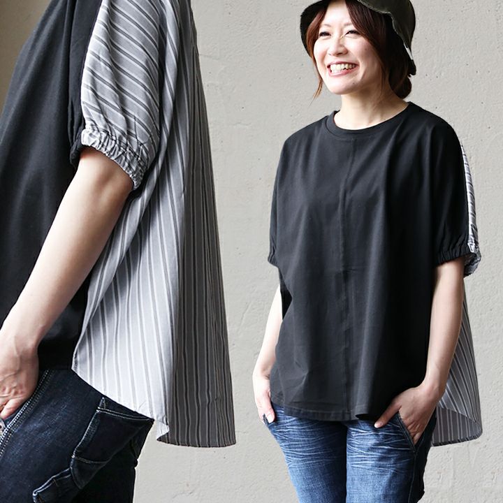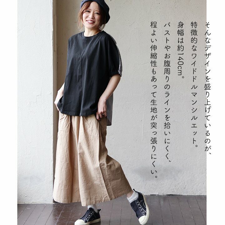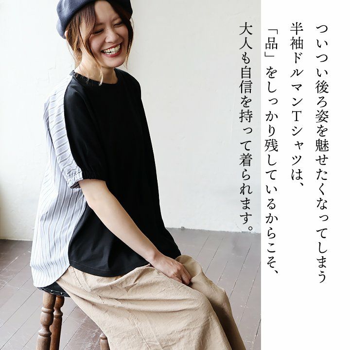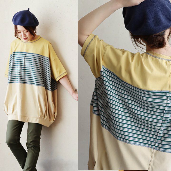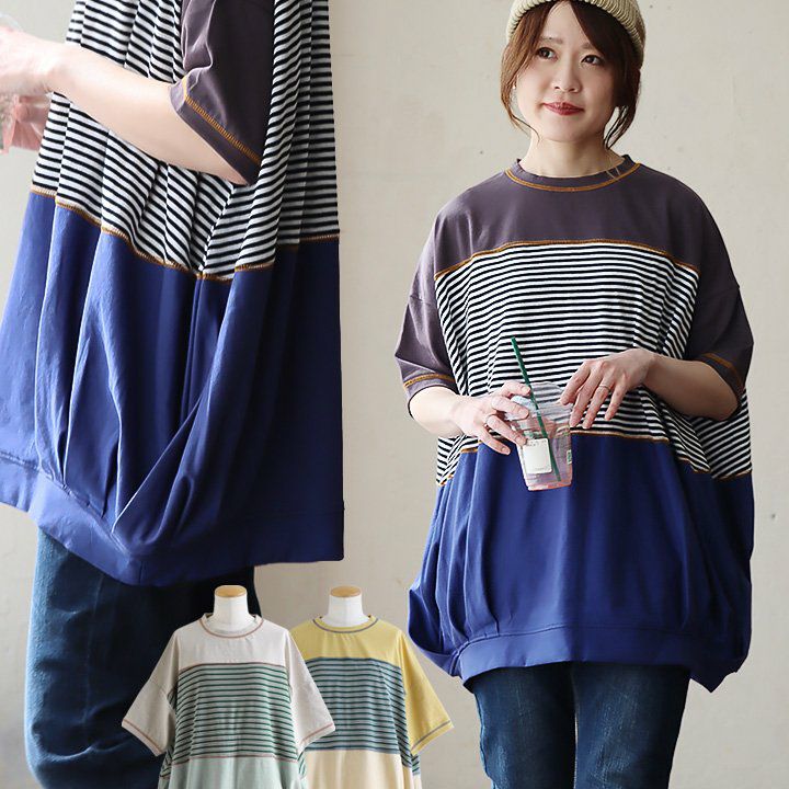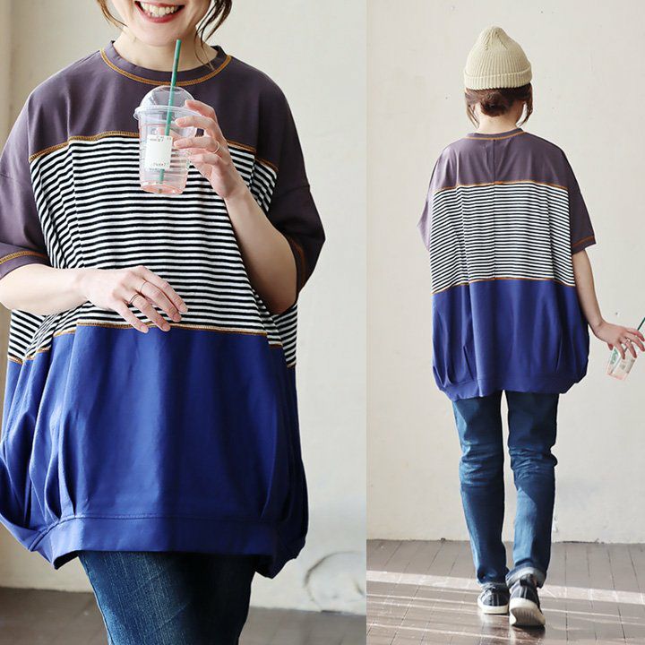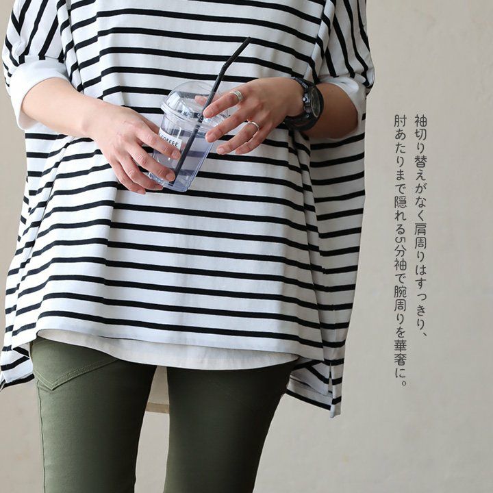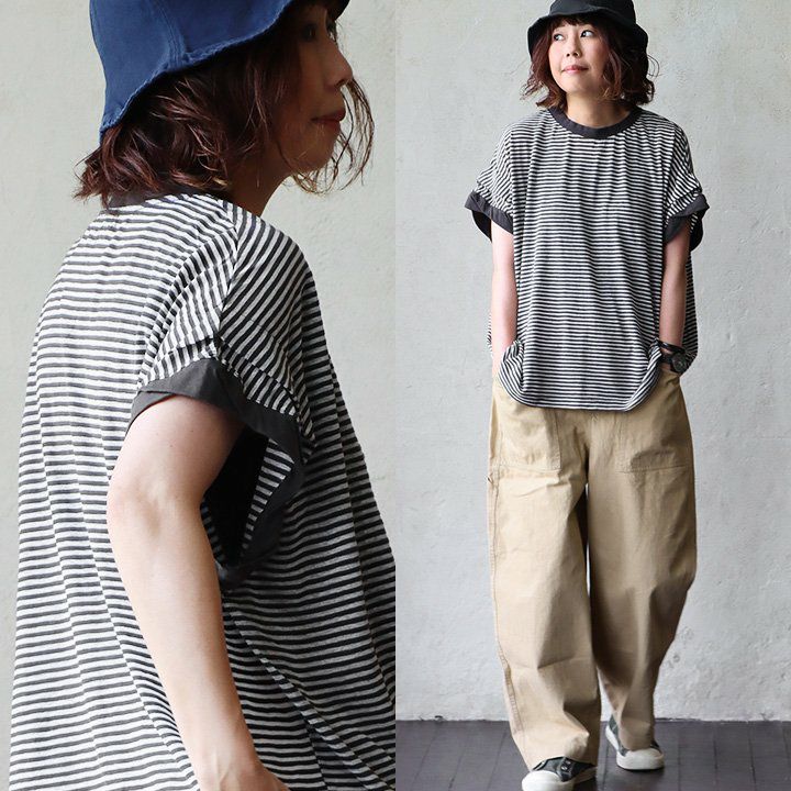 他の画像を見る ガラっと変わる印象。品のある表情。 【メール便50】 Tシャツ 半袖 ドルマン レディース 無地 ストライプ 配色切り替え 袖ゴム 綿100% コットン ポリエステル 薄手 軽い 体型カバー 大きいサイズ カジュアル 夏 夏服 パティ le colis ルコリ 2~3日でお届け 販売価格 ¥ 4,290 税込 在庫切れ カートに入れる お気に入りに登録する