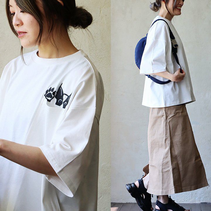 他の画像を見る のぞく、イヌ。 【メール便50】 Tシャツ 5分袖 レディース クルーネック 胸ポケット 犬 イヌ 刺繍 無地 綿100 コットン 通気性 ゆったり ワイド 大きいサイズ 二の腕 体型カバー カジュアル 夏 夏服 パティ COLORK カラック 2~3日でお届け 販売価格 ¥ 4,290 税込 在庫切れ カートに入れる お気に入りに登録する
