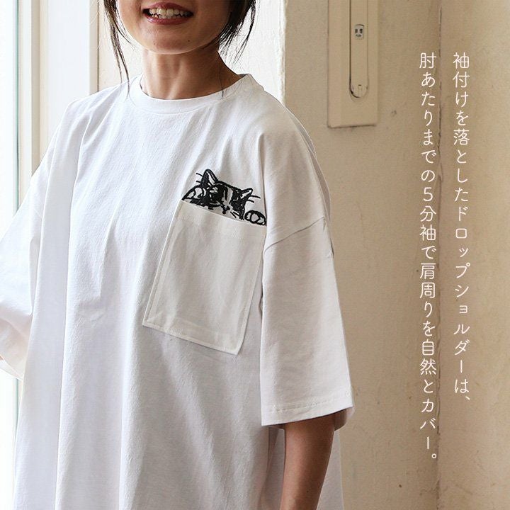 他の画像を見る のぞく、ねこ。 【メール便50】 Tシャツ 5分袖 レディース クルーネック 胸ポケット 猫 ネコ 刺繍 無地 綿100 コットン 通気性 ゆったり ワイド 大きいサイズ 二の腕 体型カバー カジュアル 夏 夏服 パティ COLORK カラック 2~3日でお届け 販売価格 ¥ 4,290 税込 在庫切れ カートに入れる お気に入りに登録する