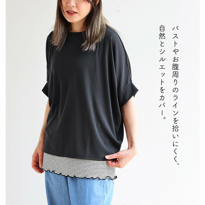 他の画像を見る 「いつものボトムに合わせるだけ」で、いつも以上に幅広いバリエーション。 【メール便38】 Tシャツ 5分袖 レディース クルーネック ワイド 着痩せ すっきり リメイク風 異素材 無地 スラブ天竺 レーヨン 薄手 涼しい 軽い 伸縮性 ゆったり 体型カバー 大きいサイズ カジュアル 夏 パティ GENTIL ジャンティ 2~3日でお届け 販売価格 ¥ 4,290 税込 在庫切れ カートに入れる お気に入りに登録する