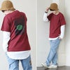 【モデルコメント】中は、タンクトップくらいが良いですね。フィット感が出ない程度にゆとりがあって、ジャストサイズって感じでした。 【客観的コメント】まもるくらいまでの体型なら、フィット感なく着てもらえるサイジングだね。