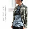 【モデルコメント】中は、タンクトップくらいが良いですね。大きなゆとりはなく、すっきりとした着心地でした。 【客観的コメント】まもるよりもガッチリした人には、Lサイズをオススメしたいサイジングだね。
