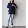 程よく厚みのある綿100%の米綿天竺地。ややドライな質感で、着始めは少し硬さがありますが、着るほどに馴染みます。伸縮性・透け感ともにありません。ホワイトは光にかざすとやや透け感があります。