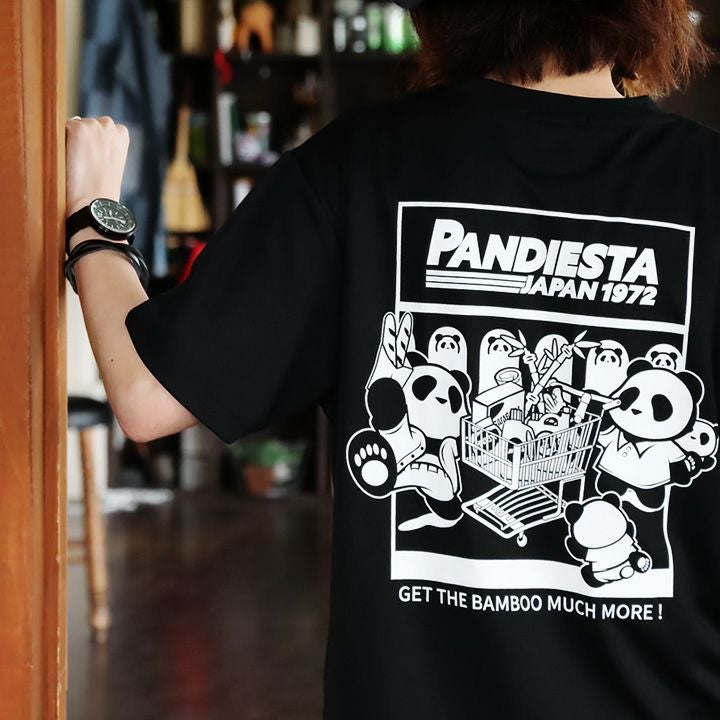 「あのスーパー」くらい、確かに涼しい。 【メール便50】 PANDIESTAJAPAN パンディエスタジャパン Tシャツ 半袖 メンズ レディース プリント パンダ 熊猫 ブラック ポリエステル100% 薄手 軽い 通気性 涼しい カジュアル 夏 パティ