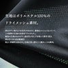 やや薄手のポリエステル生地で、表側はほんのり光沢があり裏側は細かいメッシュ素材になっています。軽量で通気性のあるドライタッチな生地感。縦・横・斜め方向に伸縮性があり、光にかざすと若干透け感があります。