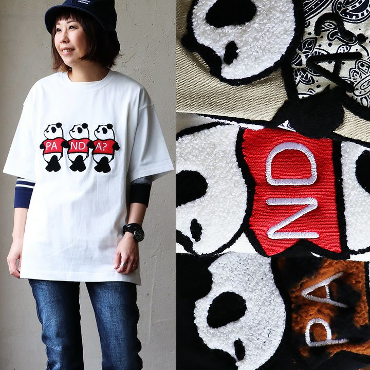 3匹揃って初めて「PANDA」?。 PANDIESTAJAPAN パンディエスタジャパン Tシャツ 半袖 メンズ レディース 刺繍 プリント パンダ 熊猫 綿100% コットン 伸縮性 ゆったり 大きいサイズ カジュアル 夏 パティ