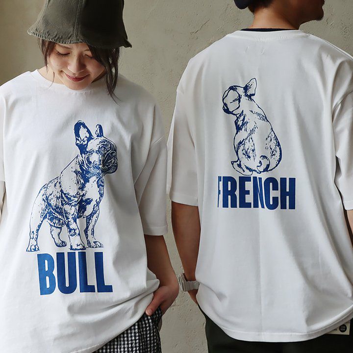 前も後ろも、フレンチブル。 【メール便50】 Tシャツ 半袖 メンズ レディース クルーネック 犬 フレンチブルドッグ プリント 米綿100 USAコットン 伸縮性 大きいサイズ 夏 夏服 カジュアル パティ modem Design モデムデザイン