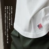 やや薄手ながらもしっかりと目の詰まった米綿100%の天竺地。サラッとした質感で軽く、編地による伸縮性があり、光にかざすと透け感があります。