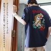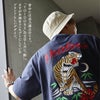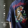 「虎」と「酔!?」 Tシャツ 半袖 メンズ レディース クルーネック トラ 虎 刺繍 スカジャン風 綿100 コットン 伸縮性 通気性 ゆったり 大きいサイズ カジュアル 夏 夏服 パティ YOIDORE ヨイドレ