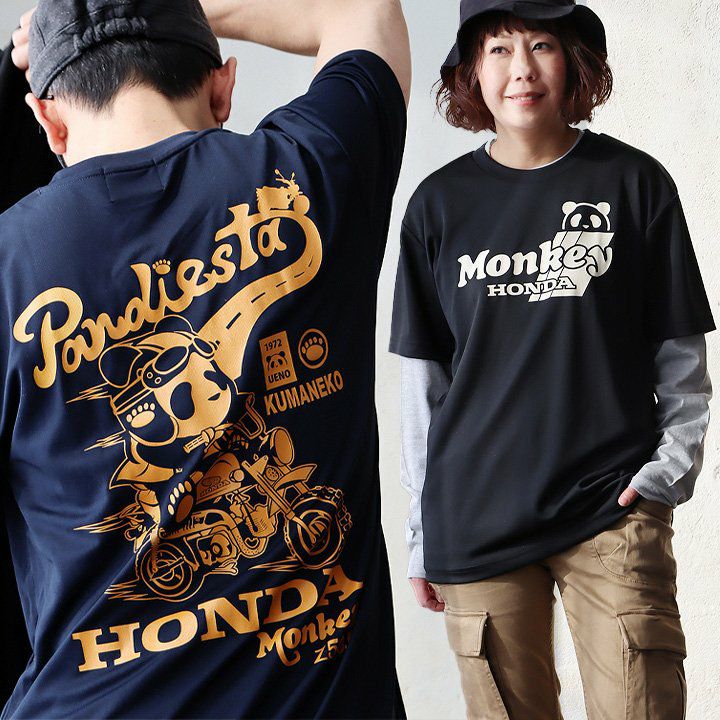 カッコいい背中。快適な着心地。 PANDIESTAJAPAN パンディエスタジャパン Tシャツ半袖メンズレディース クルーネック パンダ HONNDA コラボ バイク プリント ドライメッシュ 吸水速乾 薄手 UVカット 伸縮性 ポリエステル 薄手 カジュアル パティ