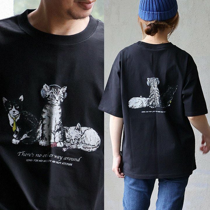 前も後ろも愛くるしい姿。 【メール便50】 Tシャツ 半袖 メンズ レディース クルーネック 猫 ネコ プリント バックプリント 綿100 コットン 伸縮性 通気性 カジュアル 夏 パティ