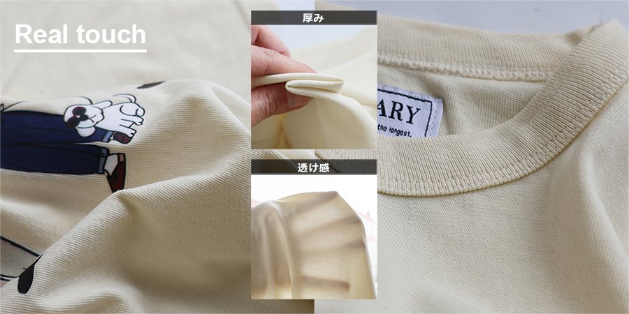 本体:薄手でさらさらと滑らかな質感のコットン100%地。伸縮性があり、透け感があります。