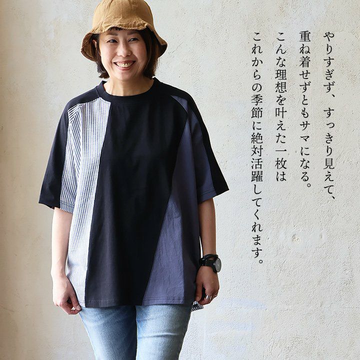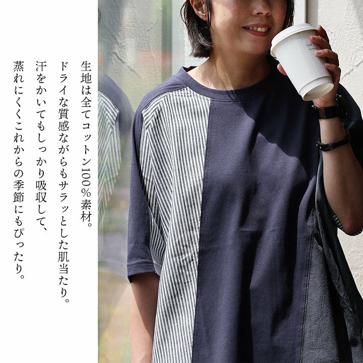他の画像を見る やり過ぎず、すっきり見えて、重ね着いらず。 【メール便50】 着やせ tシャツ 5分袖 レディース ワイド 異素材切り替え クレイジー 布帛 ストライプ 綿100% コットン しっかり 丈夫 タフ ドライ すっきりお尻 二の腕 体型 すっきり カバー ラグラン カジュアル 夏 パティ 2~3日でお届け 販売価格 ¥ 4,290 税込 在庫切れ カートに入れる お気に入りに登録する