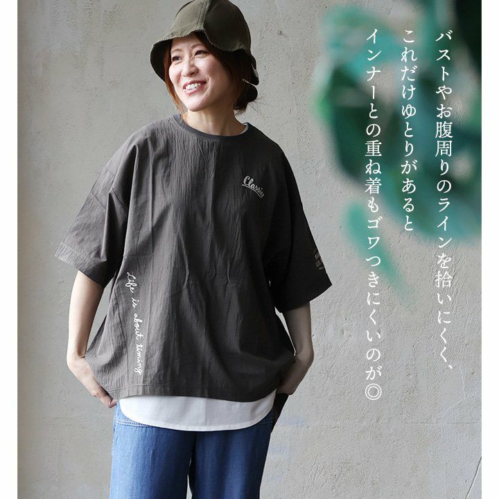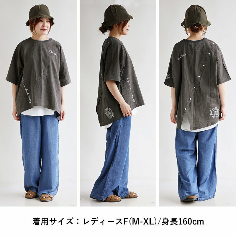他の画像を見る サッと着るだけで、粋な後ろ姿。 【メール便50】 Tシャツ 5分袖 レディース クルーネック ロゴプリント 刺繍 バックシャン 薄手 軽い 通気性 涼しい 綿100 コットン 布帛 大きいサイズ 体型カバー ゆったり 着痩せ カジュアル 夏 パティ 販売価格 ¥ 4,950 税込 在庫切れ カートに入れる お気に入りに登録する
