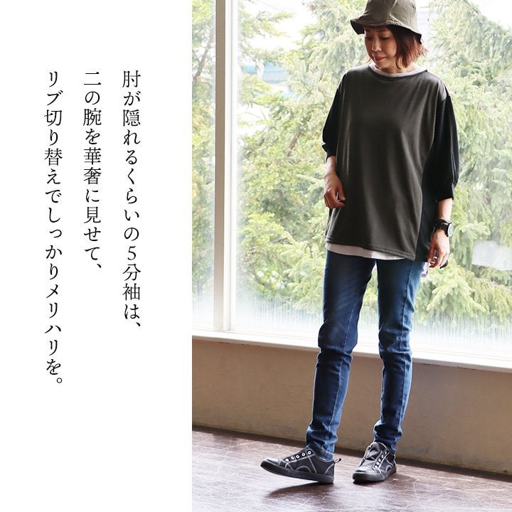他の画像を見る メリハリ効かせて、ゆるっと着痩せ。 【メール便50】 ドルマン tシャツ レディース 5分袖 しっかり 綿100% 配色 リブ ビッグシルエット 7分袖 ワイドシルエット ゆったり 着痩せ 甘くない 二の腕 カバー ティーシャツ クルーネック 5分袖tシャツ 無地 大人 カジュアル パティ Souple スプル 2~3日でお届け 販売価格 ¥ 3,850 税込 カートに入れる お気に入りに登録する