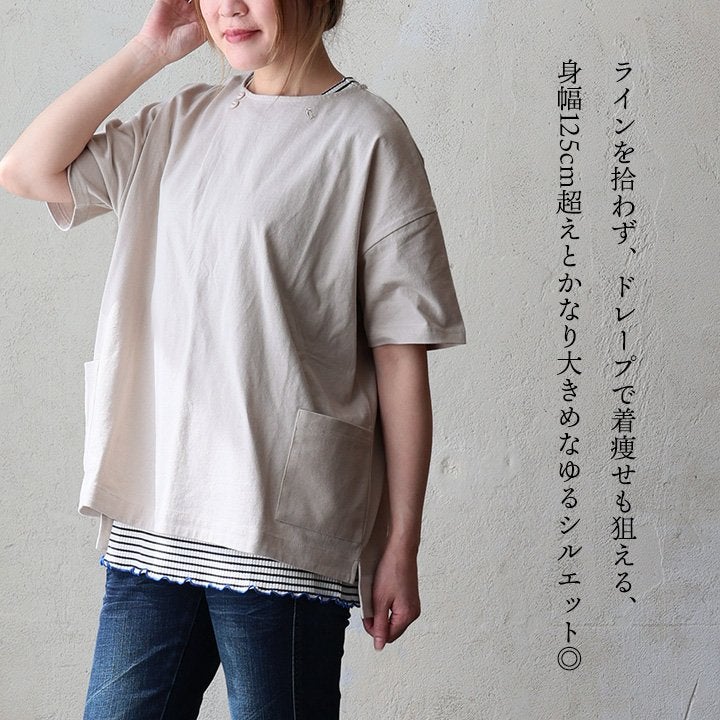 他の画像を見る 「ライン」は見せずに、しっかり「涼しく」「着痩せ」。 着痩せ チュニック tシャツ レディース 五分袖 二の腕 お尻 隠れ カバー ゆったり ワイド スッキリ 切り替え 大人可愛い 綿100% コットン しっかり 丈夫 重ね着 ポケット パティ SAIL セイル 2~3日でお届け 販売価格 ¥ 4,290 税込 カートに入れる お気に入りに登録する
