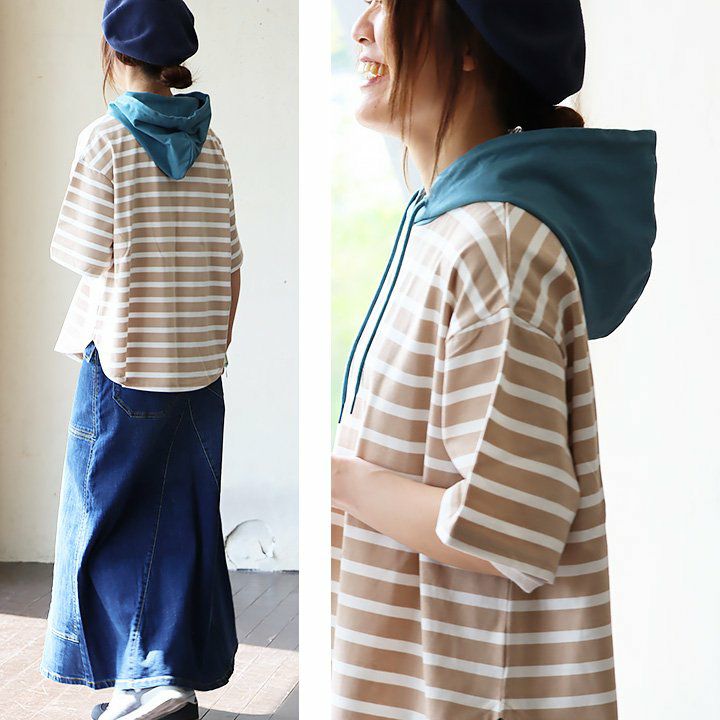 他の画像を見る Tシャツとパーカーの良いとこどり。 Tシャツ 5分袖 レディース クルーネック フード付き ボーダー 無地 配色 綿100% コットン 天竺 伸縮性 重ね着風 体型カバー 大きいサイズ すっきり カジュアル 夏 パティ le colis ルコリ 2~3日でお届け 販売価格 ¥ 4,950 税込 在庫切れ カートに入れる お気に入りに登録する