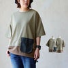 6. Tシャツ 5分袖 レディース クルーネック 綿100 コットン 天竺 伸縮性 配色切り替え ポケット ロックコード 着痩せ 体型カバー 二の腕 カジュアル 夏 パティ GENTIL ジャンティ